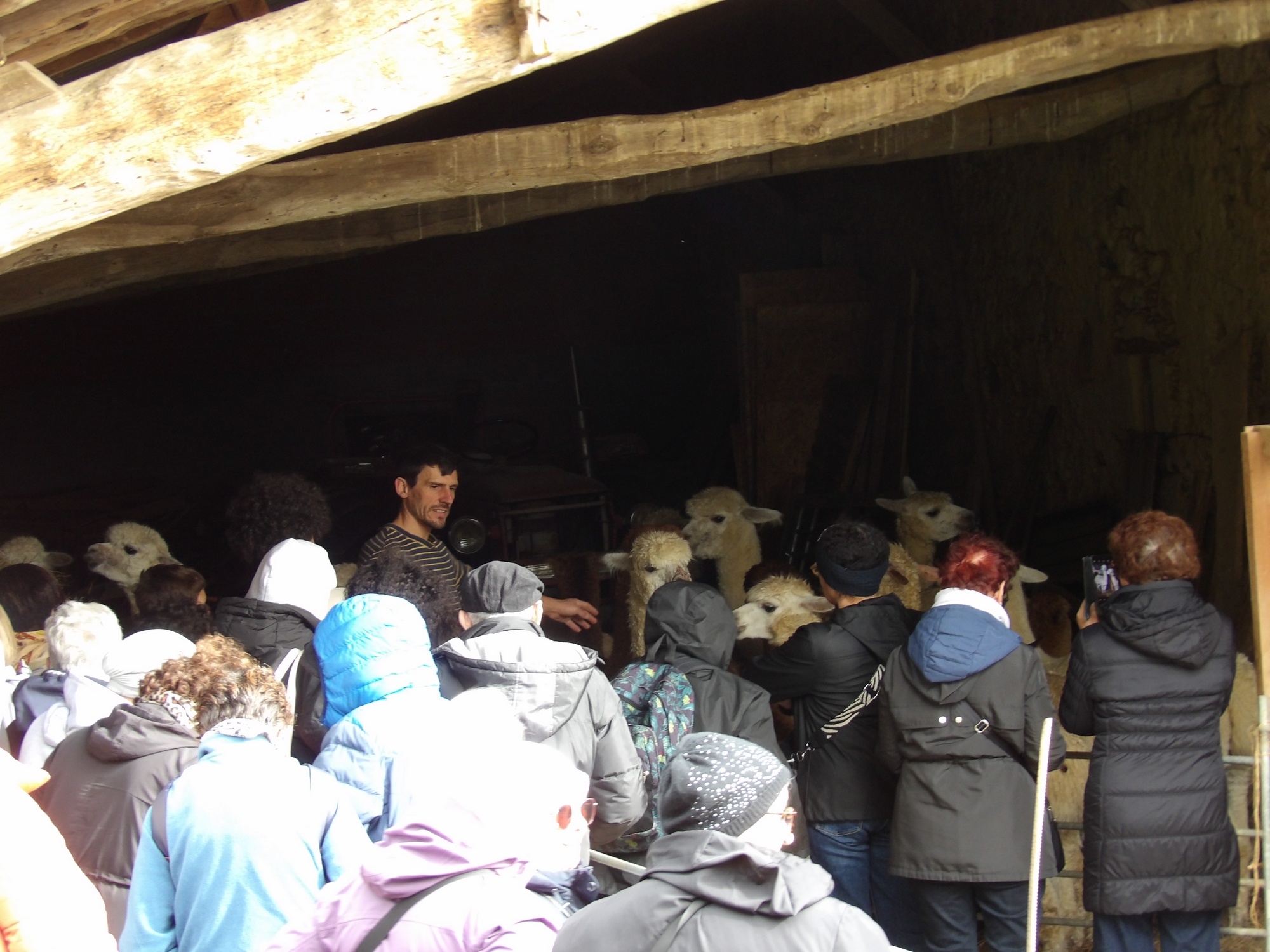 La visite s’organise sur rendez-vous et dure entre 1h et 1h30 (lundi et jeudi 14h). Nous allons à la rencontre des Alpagas, le plus souvent auprès des femelles allaitantes et de leurs petits crias. L'occasion d'évoquer les origines et spécificités de ces animaux, nos choix et notre quotidien d'élevage. Puis nous vous présentons nos différents ateliers et métiers de transformation de la laine : cardage, filage au rouet, teinture, tricot machine, tissage, feutrage, etc... et enfin nous terminons la visite dans notre coin boutique ou vous pourrez découvrir tous nos articles. Jus de Pommes et Crème de marron produits à la ferme sont aussi à la vente.