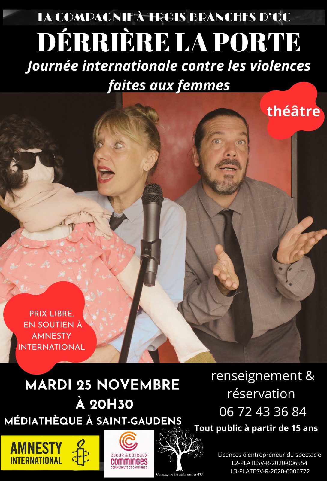 La Compagnie à trois branches d'Oc et Amnesty international proposent le spectacle de théâtre "Derrière la porte", tout public à partir de 15 ans. Renseignements et réservations auprès d’Amnesty International.