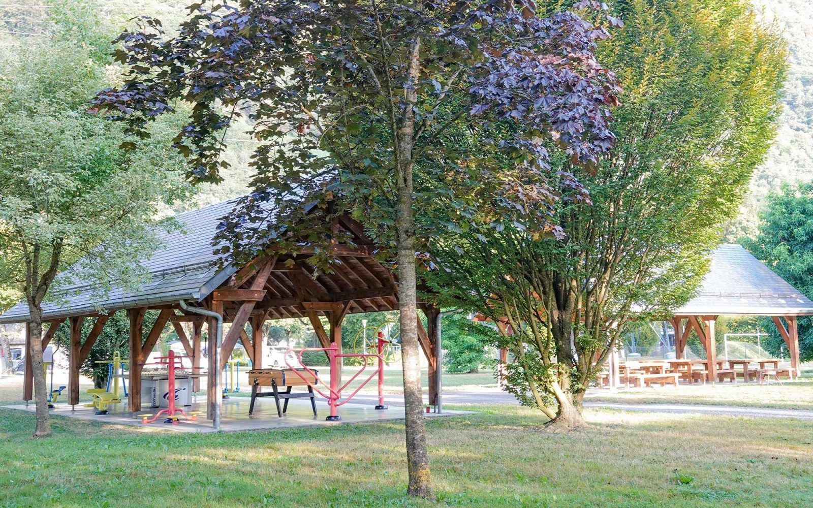- Accès internet-Barbecue-Borne multi-service-Boulodrome-Branchements d'eau-Branchements électriques-Chaise haute-Containers-Emplacement camping car-Evacuation des eaux usées-Jacuzzi ou SPA-Jeux pour enfants-Lit bébé-Piscine-Rehausseur-Salle de jeux-Salle de réunion-Salon de télévision-Sanitaires-Table à langer-Terrain de sport-Vidange toilettes-Wifi