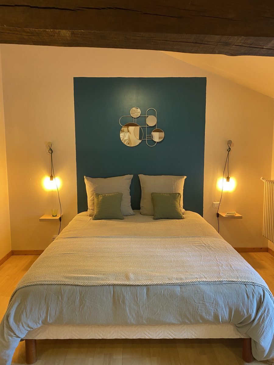 Les chambres d'hôtes ont une entrée indépendante pour accéder aux 3 grandes chambres à l'étage : - une chambre pour 2 personnes avec lit double en 140 - une chambre pour 2 à 3 personnes avec 3 lits en 90 dont 2 pouvant être jumelés - une chambre pour 4 personnes avec 1 lit double en 160 et 2 lits en 90. Chacune possède son WC indépendant et salle d'eau privatifs et communicants.