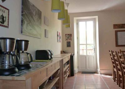 Nos chambres sont situées aux 1er et 2ème étages du centre. Allant des chambres doubles avec salle de bain, des chambres à deux lits avec salle de bains et des chambres à trois ou quatre lits avec salle de bains. - La salle à manger est le centre de toute l’activité et c’est là que votre petit-déjeuner buffet sera servi à partir de 08h00. Nous fournissons des céréales, du pain (toasts), des confitures, du nutella, des yaourts, du thé, du café, des jus de fruits et des œufs (cuiseur vapeur). - Les repas du soir sont servis à partir de 19h30 et se composent de trois plats, normalement, des soupes, des salades pour les entrées. Une extravagance saine cuisinée à la maison pour votre plat principal et un beau dessert savoureux. Le vin est également inclus avec le repas. - La kitchenette est située au 1er étage et dispose de tout ce dont vous avez besoin pour des vacances indépendantes. Réfrigérateur, four, plaque de cuisson et micro-ondes vous permettent de préparer des collations pour le déjeuner ou les festins de minuit. Nous fournissons du thé, du café et du lait pour que vous puissiez avoir des boissons chaudes quand vous le souhaitez. Il y a aussi des sièges confortables pour que vous puissiez vous détendre et lire loin de la salle de télévision. - L’accès à la terrasse se fait par la salle à manger. Nous essayons de manger sur la terrasse autant que possible et c’est un endroit parfait pour se détendre sur les chaises longues ou se baigner dans la piscine sans fin, et si vous le souhaitez vous pourrez vous détendre dans la petite piscine située sur notre terrasse à côté de la maison. - Le Lounge est un endroit où vous pouvez vous asseoir et vous détendre. Des canapés confortables, une télévision Sky grand écran et de nombreux livres vous permettent de vous détendre complètement après une dure journée à vélo ou à pied dans les montagnes. - Le Bike Barn est ce que nous appelons l’atelier. Dans l’une de nos granges attenantes à la maison se trouve l’atelier spacieux qui abrite les vélos de location, nos propres vélos et bien sûr vos vélos lorsque vous séjournez chez nous. - Une table Baby Foot (baby-foot) au 2ème étage avec des sièges confortables. Vous pouvez utiliser les machines à laver et les sèche-linge.