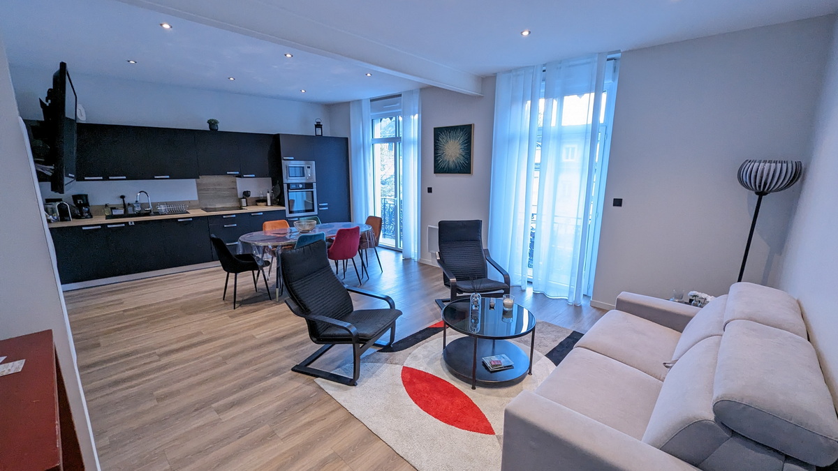 Bienvenue dans notre T3 en plein cœur de Bagnères-de-Luchon. Situé au cœur de Bagnères-de-Luchon, notre appartement de 67 m² vous offre le cadre idéal pour découvrir les Pyrénées, que ce soit pour un séjour sportif ou détente. Un emplacement privilégié. Installé au deuxième étage avec ascenseur, l'appartement bénéficie d'une situation exceptionnelle. Son balcon donne directement sur l'Allée d'Étigny, artère principale et vivante de la commune, vous plongeant au cœur de l'animation locale. La nouvelle télécabine de Superbagnères, inaugurée en décembre 2023, se trouve à seulement 2 minutes à pied, vous offrant un accès immédiat aux pistes de ski et aux randonnées en altitude. Des espaces confortables et lumineux. Dès votre arrivée, vous serez accueillis par une spacieuse salle de séjour dotée d'une cuisine équipée, parfaite pour préparer vos repas en famille ou entre amis. Un canapé-lit convertible permet d'accueillir deux personnes supplémentaires, portant la capacité d'hébergement à six personnes. L'appartement dispose de deux chambres offrant toutes deux une vue imprenable sur la montagne et le sommet de Superbagnères. La première chambre est équipée d'un lit double de 140 cm, tandis que la seconde propose deux lits simples de 90 cm, idéale pour les enfants ou les amis. Une salle de bain moderne avec douche et des toilettes séparées complètent les équipements de ce logement fonctionnel et accueillant. L'essentiel pour un séjour réussi Que vous veniez pour dévaler les pistes de Superbagnères, profiter des thermes de Luchon ou explorer les merveilles pyrénéennes, cet appartement conjugue confort, praticité et emplacement de choix pour faire de vos vacances un moment inoubliable.