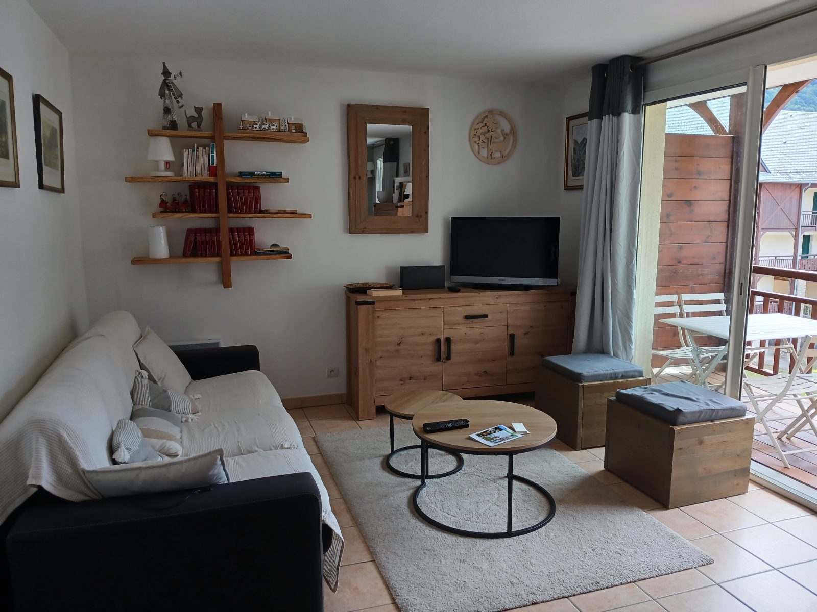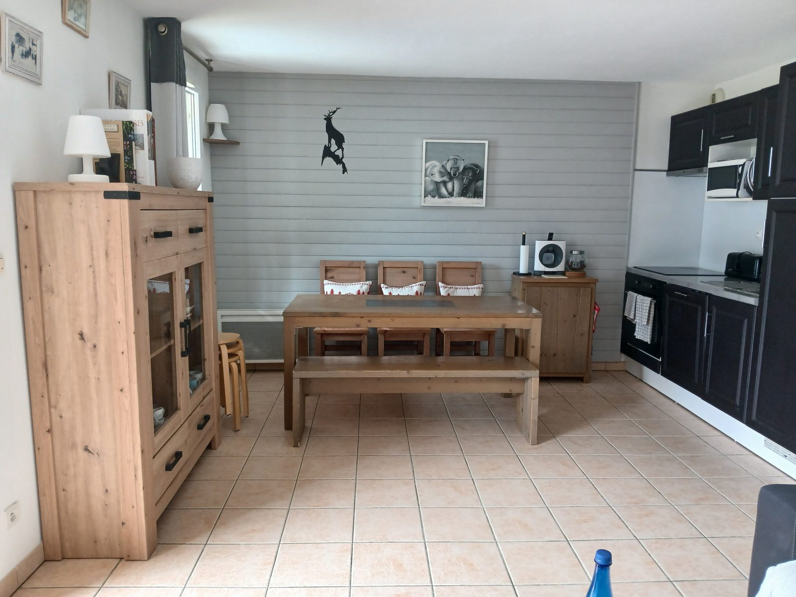 Le logement est composé : d'un coin séjour et coin cuisine donnant sur un balcon avec vue sur Le Vénasque. Une chambre parentale, une chambre "enfants" avec lits superposés et sa salle d'eau (évier et douche). Une salle de bain. WC indépendant. Parking couvert.