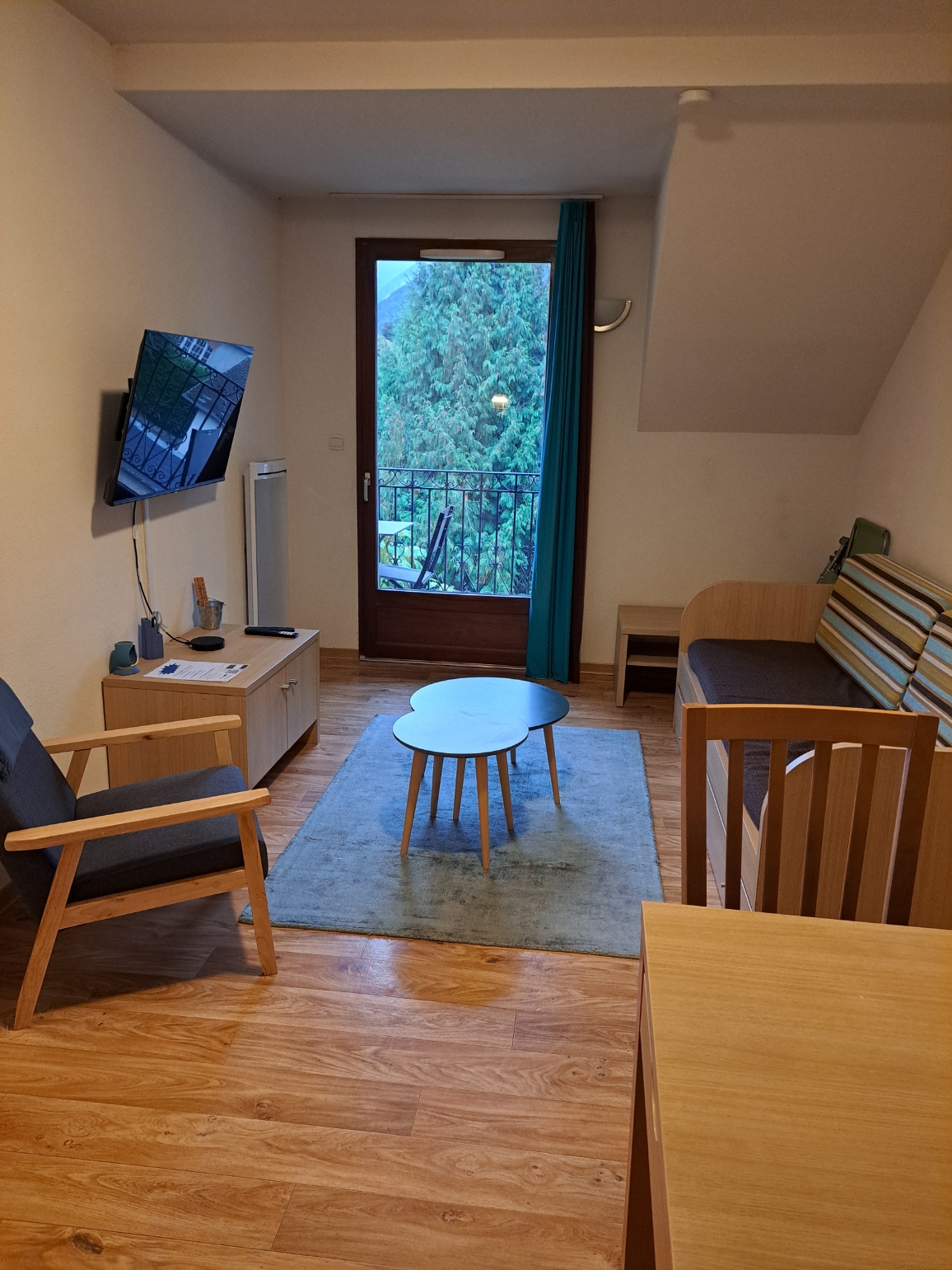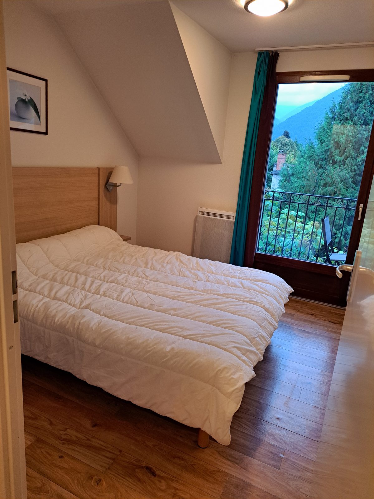 Cet appartement T2 est situé dans une résidence à 10 mn du centre ville à pied au 3 étage avec ascenseur, exposé plein sud avec une vue sur les montagnes. Il comprend : Un séjour avec un canapé pour deux couchages. Une chambre avec un lit en 160. Une cuisine équipée. Une salle de bain. Un WC indépendant. Un balcon avec vue. Un parking privé.