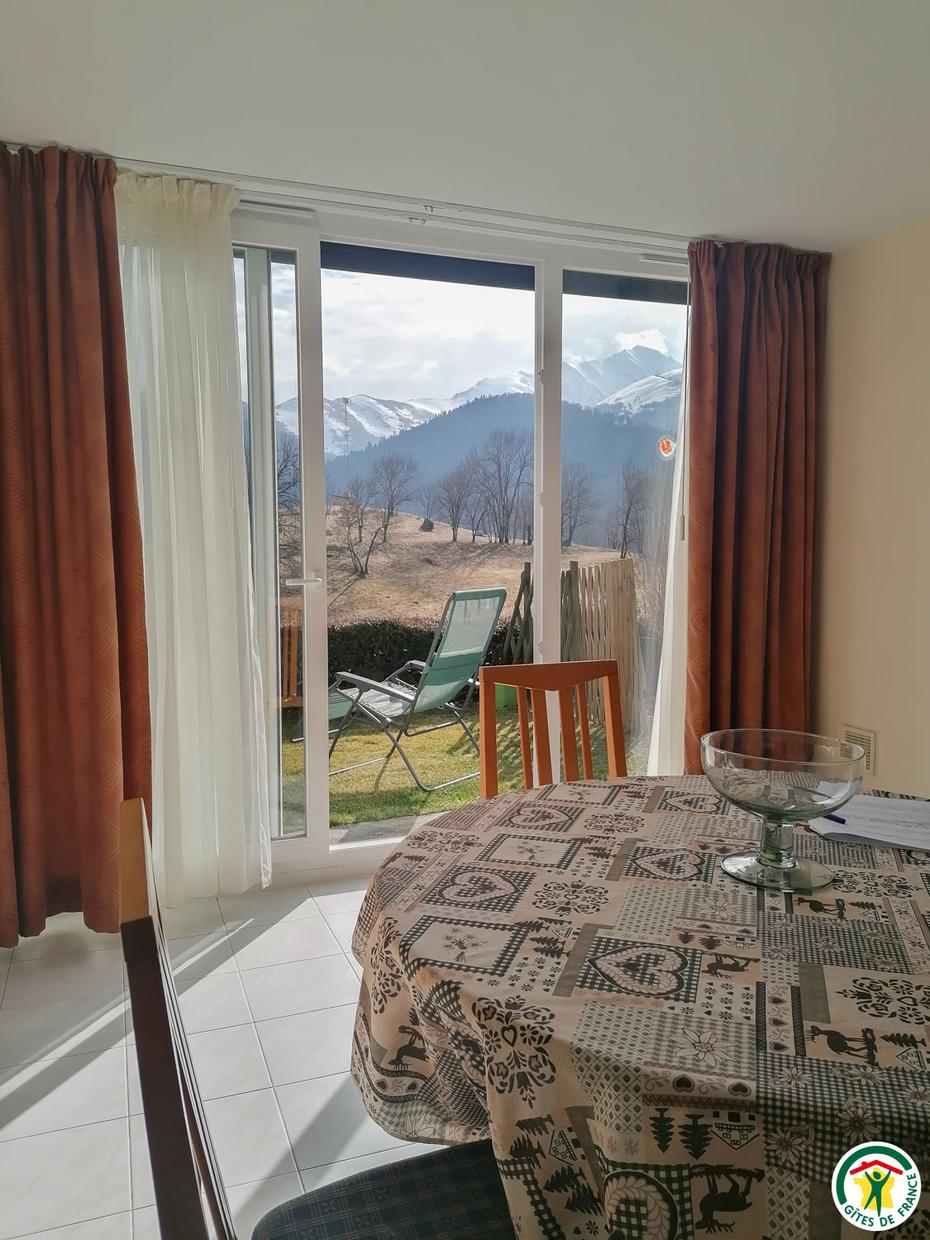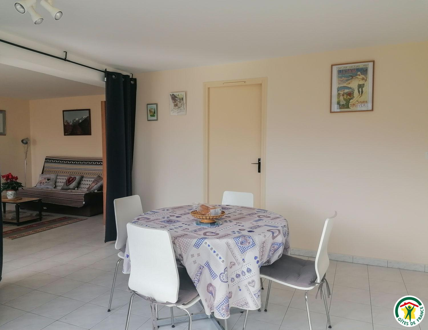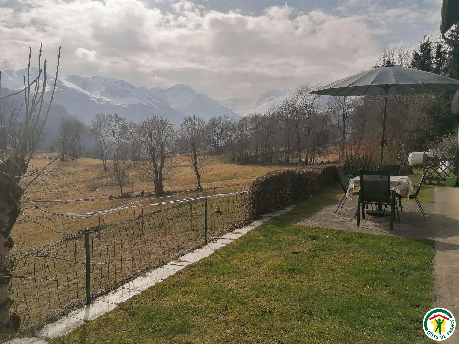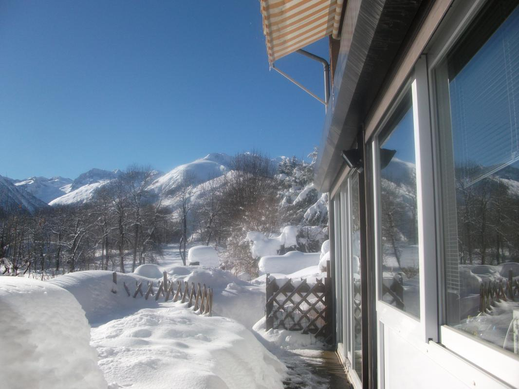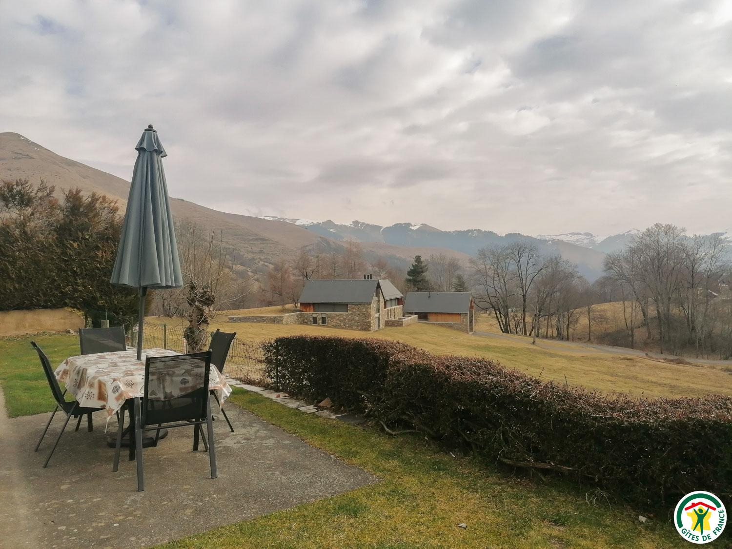 Location de vacances mitoyenne pour 5 personnes, à Garin, à 5km de la station de ski et d'été de Peyragudes et à 9km de Bagnères-de-Luchon. Jardin clos privatif. Animaux admis. Internet. Gîte de plain pied situé au rez-de-jardin de l'habitation des propriétaires, avec entrée indépendante. De larges baies vitrées vous offriront une vue panoramique imprenable en plein coeur du massif pyrénéen. Local pour skis, vélos... Bagnères-de-Luchon à 9km (ski, thermes, cinéma, restaurants, commerces, équitation, rafting, canoë, lac, golf, parapente et vol en planeur). Station Peyragudes (5km), Cures et remise en forme Sourcéa (9km), Rocher escalade (9km), centre balnéothérapie (Loudenvielle - 18km), Espagne (11km). Entrée sur la cuisine, séjour avec partie salon (convertible 2 personnes en 140cm), salle d'eau avec WC, chambre avec pièce de rangement attenante (1 lit 2 personnes en 140cm et 1 lit 1 personne en 90cm d'appoint). Chauffage électrique. Ligne de train SNCF Toulouse/Luchon