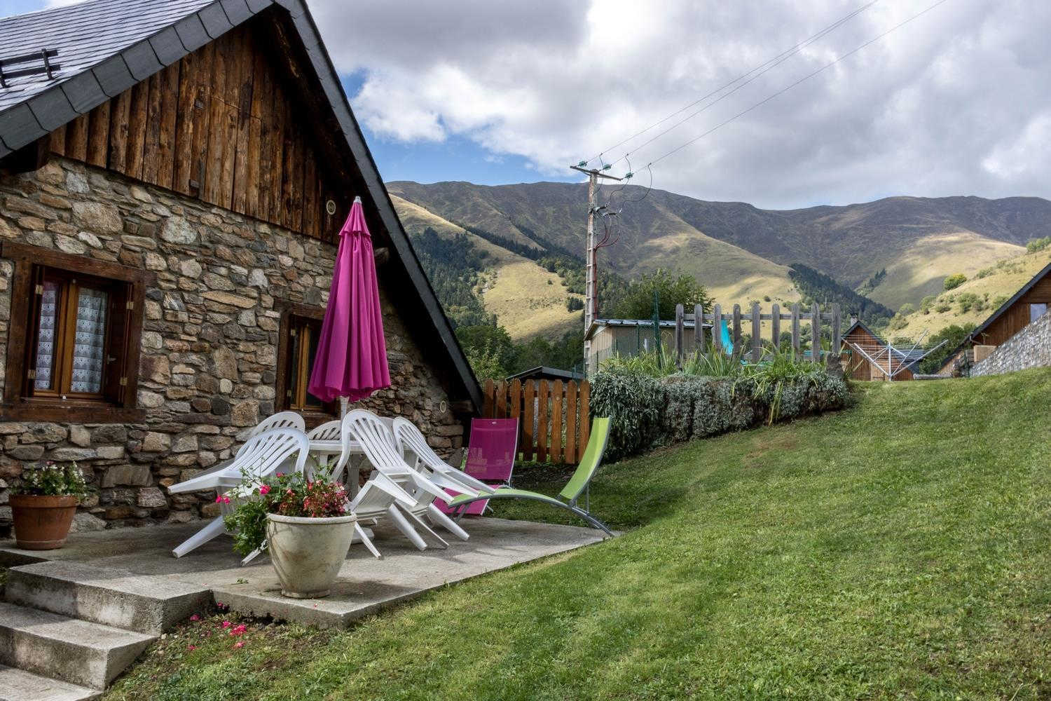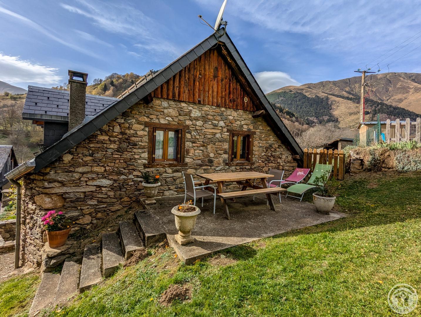 Gîte de montagne dans le village, 5 personnes, 3 épis, mitoyenne, avec d'autres habitation en vis à vis, avec cour commune. A 9km de la station de ski de Peyragudes et à 12km de Bagnères-de-Luchon. Au rez-de-chaussée : salle de séjour avec coin-cuisine et coin-détente. WC indépendant. Au premier étage : 3 chambres (1 lit 2 personnes en 140cm) (1 lit 2 personnes en 140cm) (1 lit 1 personne en 90cm + lit d'appoint), salle d'eau. Chauffage électrique. Terrain privatif clos à l'arrière, abri de jardin.