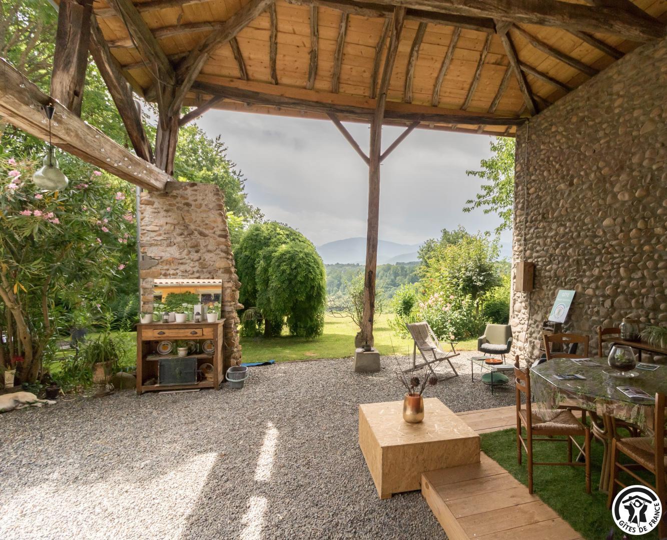 Idéalement situé entre la Haute-Garonne et les Hautes-Pyrénées, ce gîte idéal pour un couple, vous accueille dans un cadre enchanteur, avec jardin fleuri, terrasse couverte, cuisine d'été et un accès direct aux richesses naturelles et culturelles de la région. Possibilité d'une randonnée dans une forêt sur place. Vente de fromage dans la ferme voisine. Depuis la chambre parentale et le jardin, vous profiterez chaque matin d'un spectacle naturel d'exception : les premières lueurs du jour caressant les sommets pyrénéens et le Pic du Sacon, en toile de fond. La grande terrasse couverte, avec galets de Garonne apparents, parfaite pour les repas en plein air ou les soirées douces d'été, est équipée d'une cuisine d'été complète, idéale pour des moments de convivialité en toute liberté. A voir et à faire : le lac de Montréjeau (labellisé Pavillon Bleu), à seulement 3 km, est parfait pour la baignade, le farniente ou les pique-niques au bord de l'eau. La ville possède aussi un golf, toutes les commodités nécessaires, un marché remarquable, une gare de trains (pour Luchon, thermes et skis, à 44km) ou Toulouse (110km), et c'est une étape de la ViaGarona (chemin de Saint-Jacques-de-Compostelle). Visitez la Basilique Saint-Just de Valcabrère et le site de Saint-Bertrand-de-Comminges, classé Grand Site Occitanie. Explorez les grottes de Gargas, pour une aventure dans le temps. Le gîte est aménagé en duplex et se compose d'une pièce à vivre chaleureuse au rez-de-chaussée, avec coin salon, cuisine équipée et espace repas. La chambre en mezzanine (escalier très raide) possède un lit double (160*200cm) et offre la fameuse vue sur les sommets. La salle d'eau/WC est au même niveau que la chambre (pas de porte entre la chambre et la salle d'eau). Chauffage électrique. Pas de congélateur, de lave-linge ou de matériel bébé.