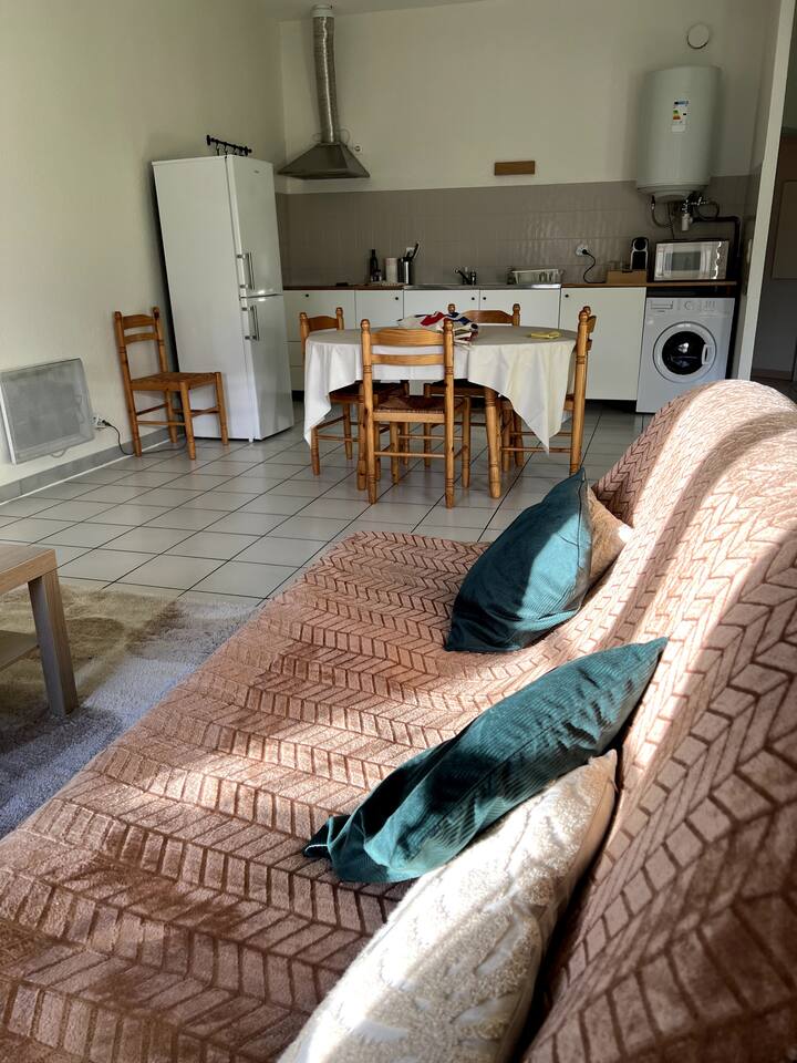 Climatisé, entièrement meublé, il est parfait pour accueillir 2 personnes pour une nuit ou plus. Entrée indépendante. Climatisation réversible, frigo, cuisinière au gaz et plaque induction, machine à laver.