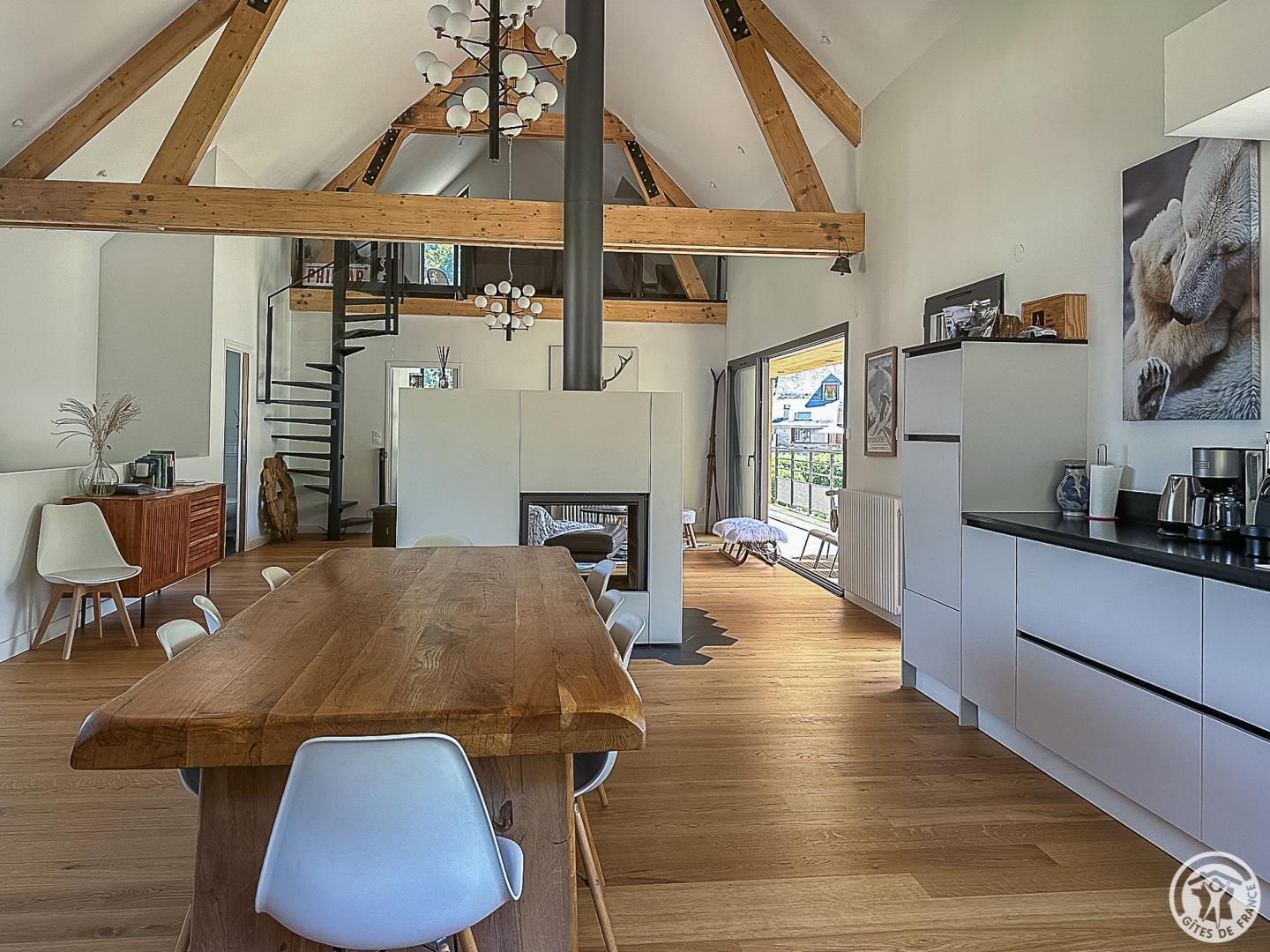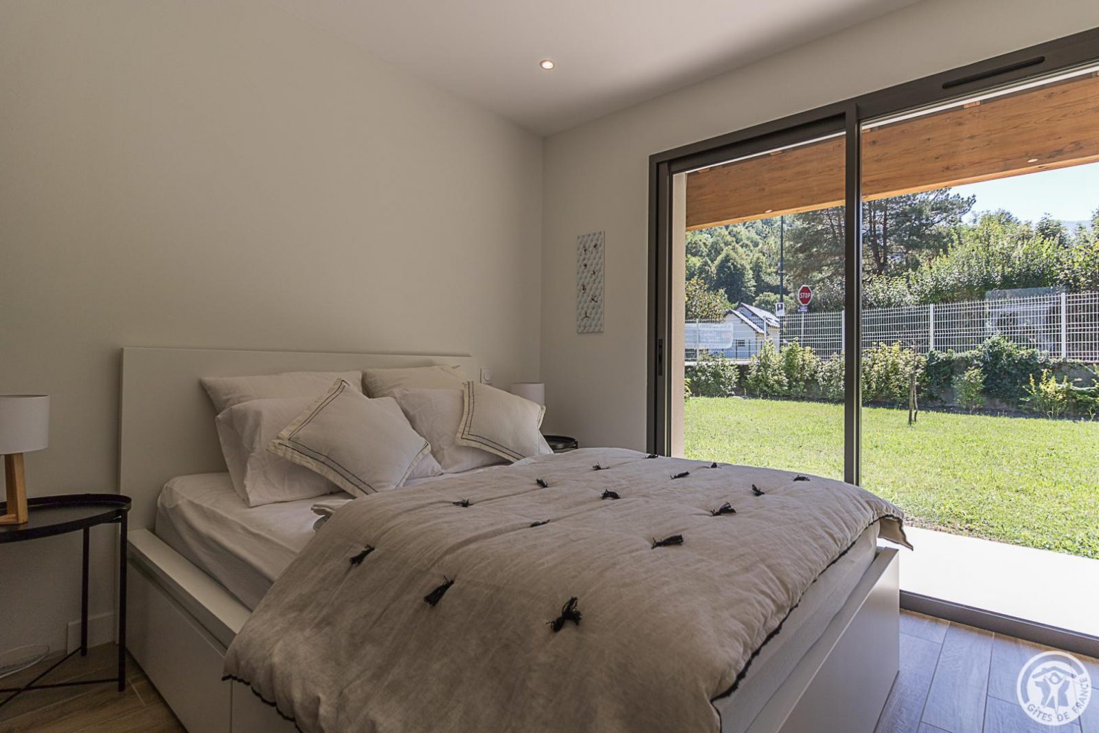 A seulement 1km du centre de Bagnères-de-Luchon, le Chalet Manica est idéal pour accueillir, été comme hiver, regroupements familiaux ou amicaux pour des séjours à la montagne . Outre les loisirs qu'offre la montagne : randonnées à partir du gîte (Cascade de Sidonie), ski (crémaillère express pour Superbagnères à 1.9km), pêche dans La Pique..., la station de Luchon, ses commerces, ses services et son animation sont à portée de main : thermes et espace aqualudique à 1km, golf à 2.2km, lac de Badech (baignade) à 4.3km, centre équestre à 5.3km... Le parc d'aventures Pyrénées Hô est à 20km (accrobranche, escalade...) et l'Espagne à 8km par le Col du Portillon. De quoi profiter à fond de ses week-ends et de ses vacances ! Le gîte est aménagé dans une villa contemporaine tournée plein Sud vers les sommets, au calme, dans un quartier résidentiel. L'espace extérieur, de 700m², propose un jardin enherbé, planté de fruitiers, une cour et un abri couvert pour le stationnement des véhicules. La maison a été conçue pour optimiser la lumière et la vue sur les Pyrénées dans toutes les pièces et pour faciliter l'accès au jardin et à la terrasse de l'étage par de larges baies vitrées. - Au RDC : partie nuit de la maison composée d'une entrée (placard/penderie), d'une buanderie avec lave-linge séchant, rangement chaussures..., de 3 chambres donnant sur le jardin (1 lit pour 2 personnes en 140x190cm) (1 lit pour 2 personnes en 140x190cm) (2 lits superposés de 2 lits en 90x200cm chacun), d'une salle d'eau et d'un WC indépendant. - A l'étage : un escalier droit mène à la grande pièce de séjour, offrant un très beau volume (charpente apparente). Une cheminée centrale donne d'un côté sur la cuisine ouverte et l'espace repas, de l'autre sur le salon. Chambre (1 lit pour 2 personnes en 160x200cm), dressing, salle d'eau, WC indépendant. - Un escalier en colimaçon monte sur la mezzanine aménagée en salon de télévision. Chauffage central au gaz. Gîte non fumeurs. Animaux non admis.