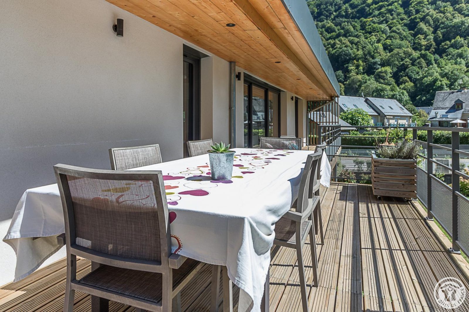 Belle villa contemporaine, sans mitoyenneté, située dans un quartier résidentiel de Saint-Mamet, à 1km de Luchon, des thermes et de la crémaillère express pour Superbagnères ! Jardin, terrasse et vue sur la montagne...
