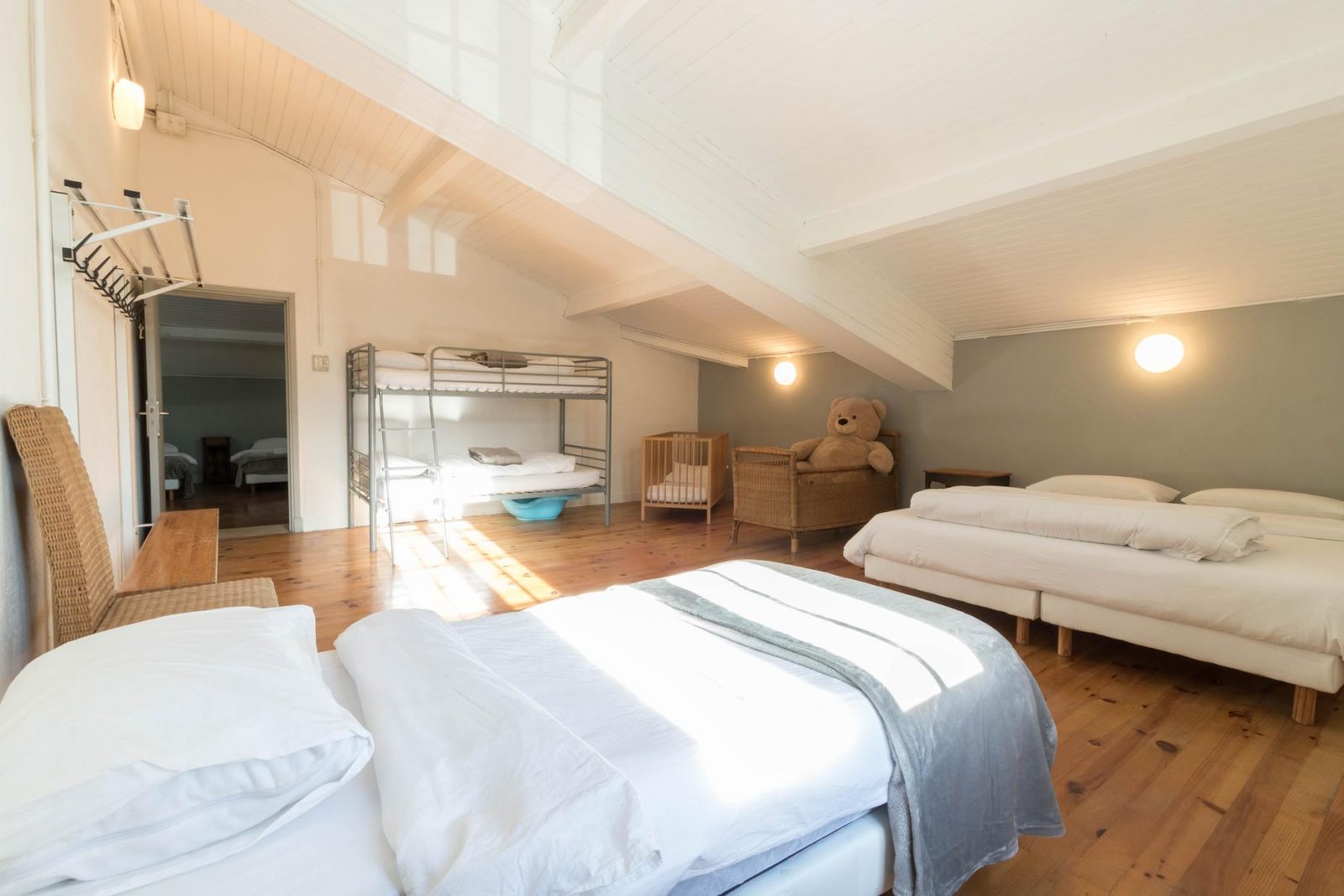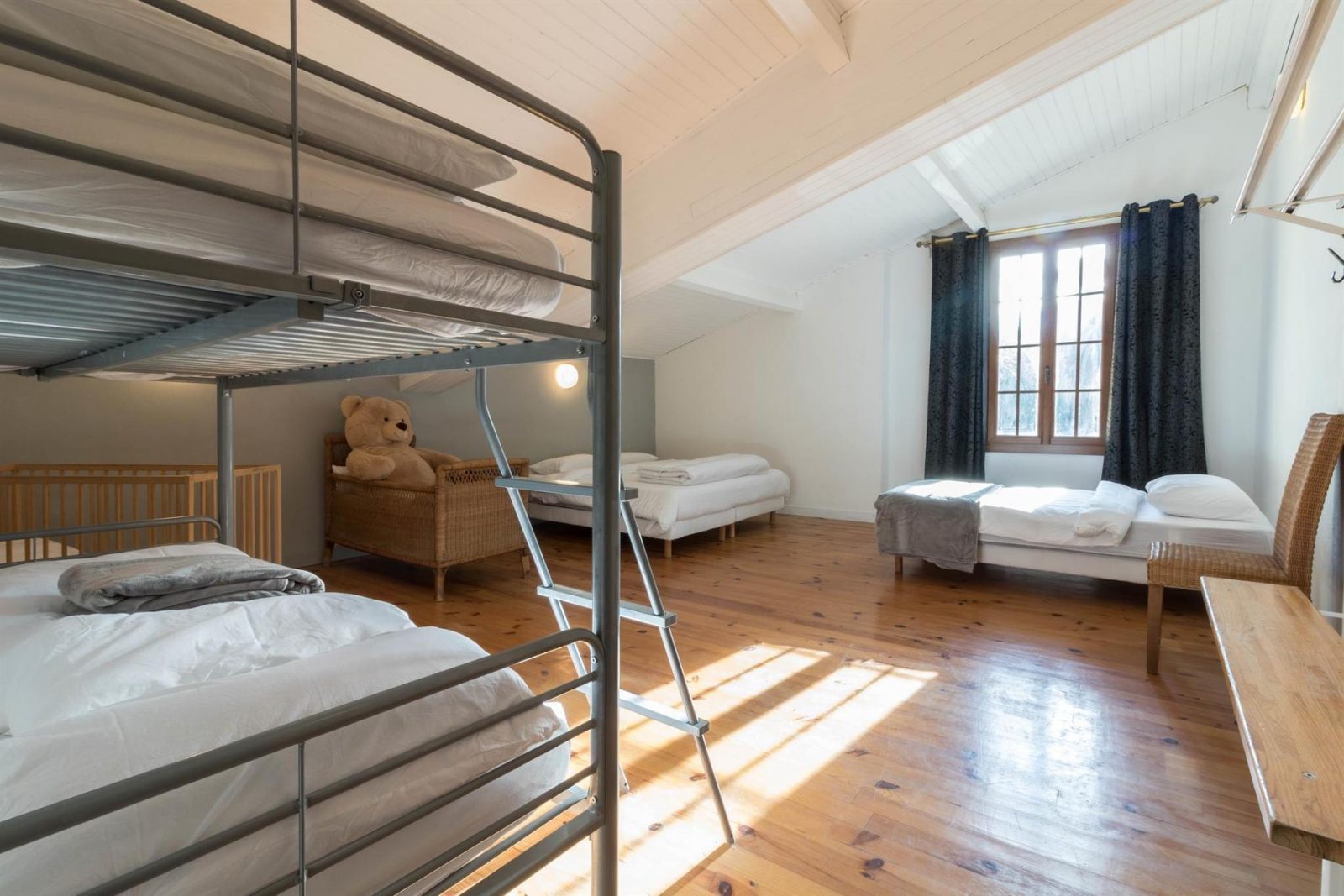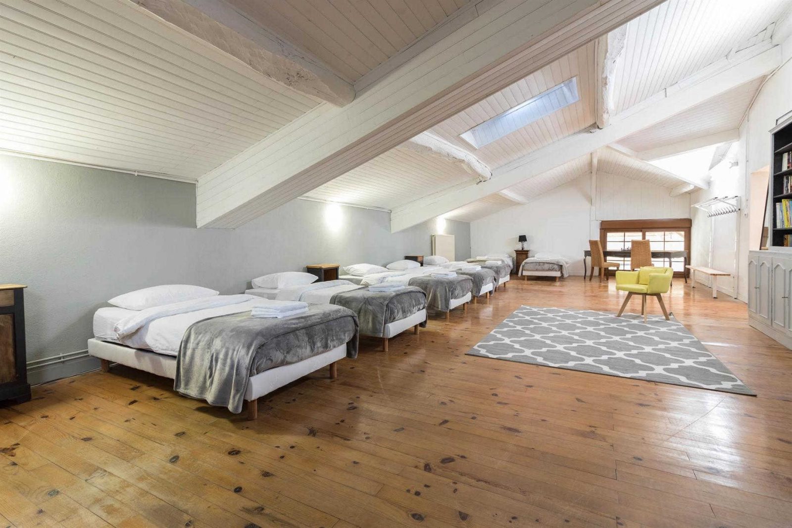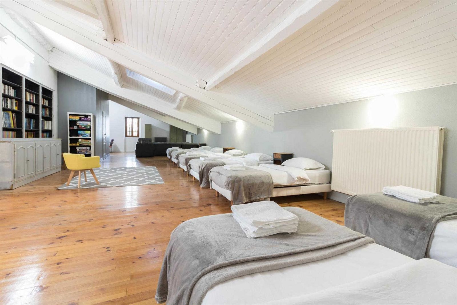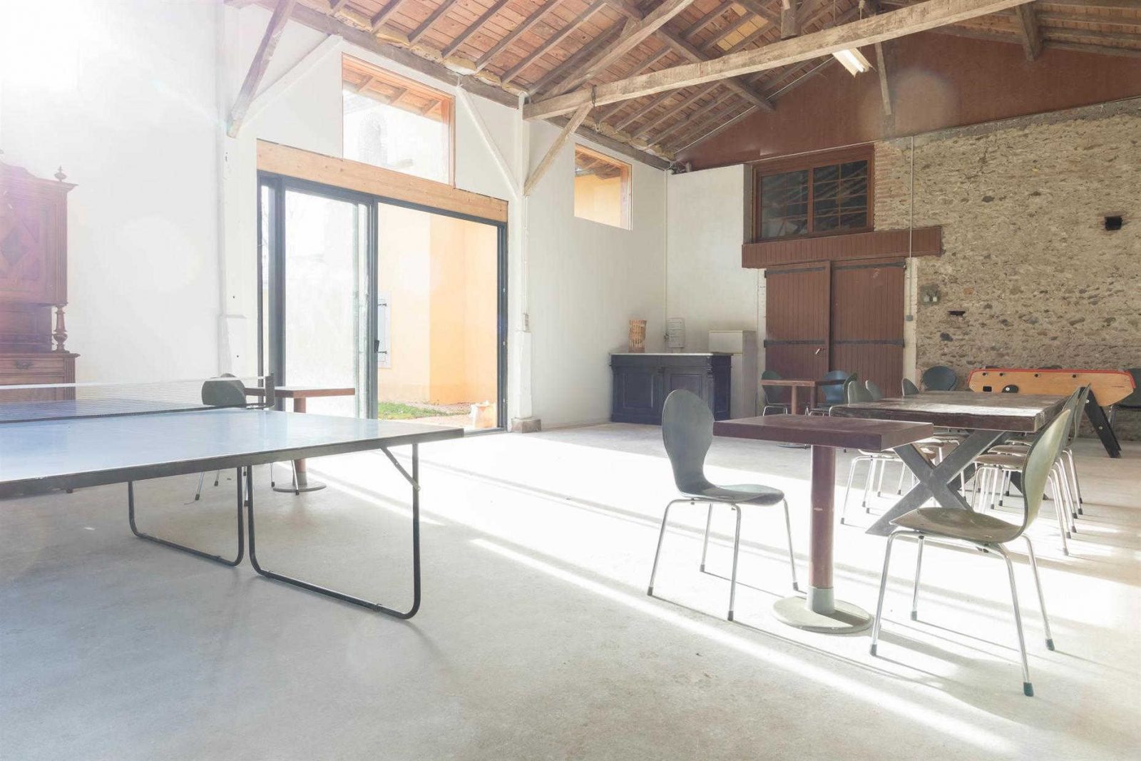 Pour vos regroupements familiaux, entre amis ou collègues de travail, une salle de séminaire avec cuisine d'été et tout l'équipement nécessaire pour vos réunions de travail, dans un parc de 8000m2 avec piscine et boulodrome ainsi qu'une grange avec table de ping-pong et baby foot ! Activités à proximité : base nautique de Cazères (4km), restaurants dans ce petit village longé par le fleuve de la Garonne (la ViaGarona, partie du chemin de Saint-Jacques-de-Compostelle), Rieux-Volvestre, un des plus beaux détours de France, est à 9km, Martres-Tolosane, et sa faïence (10km) et Montesquieu-Volvestre (13km), dégustation de vins de la région, au vignoble de Bertrand Henry, à Lavelanet-En-Comminges (7km), village gaulois de Saint-Julien (5km), marché remarquable de Montbrun-Bocage, le département de l'Ariège et les thermes de Salies-du-Salat sont à 20mns de voiture ! Gîte sur 2 étages et demi de 600m2, avec, au rez-de-chaussée : entrée, salon (TV écran plat de 140cm, 2 canapés, fauteuils et bureau), salon (cheminée, 2 canapés et fauteuils), salle à manger (buffet, micro-ondes, table et 20 chaises), cuisine (réfrigérateur-congélateur américain, 4 plaques à induction, cafetières à filtres et à dosettes, lave-vaisselle), coin lave-main, WC indépendant et salle d'eau accessible aux personnes à mobilité réduite (lave-linge). Au 1/2 étage : immense dortoir de 100m2 avec 7 lits pour 1 personne en 90*200cm, TV avec la Playstation 3 et des jeux, bibliothèque et une chambre d'appoint avec 2 lits superposés pour 1 personne en 90*200cm, 2 lits jumelables pour 1 personne en 90*200cm et 1 lit pour 1 personne en 90*200cm. Premier étage : grand palier desservant deux chambres avec chacune 1 lit pour 2 personnes en 160*200cm, une salle d'eau avec douche italienne et un WC indépendant. Deuxième étage : même composition de pièces que le premier étage. 2 salons de jardins, chaises longues et un salon de détente. Vélos à disposition. Chauffage au fuel. Animaux non admis.