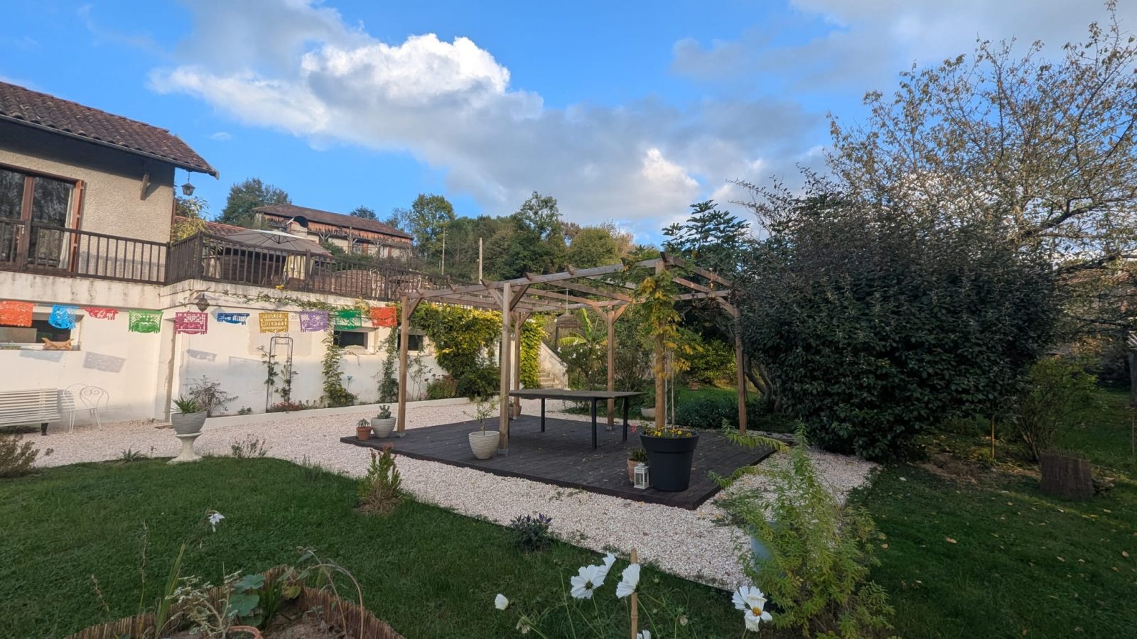Bienvenue au DOMAINE EVEYO ! Un gîte rénové avec soin en 2025 , mêlant charme d’antan et confort moderne. L’été, vous profiterez du charmant jardin d’arbres fruitiers et de rosiers, espaces ombragés, au bord de la rivière; mais également de la terrasse ensoleillée face aux montagnes pour savourer le lever ou le coucher du soleil. L’hiver, vous vous détendrez au coin de la cheminée ou dans la salle de jeux. Tout le nécessaire pour vous sentir « comme à la maison, dans un village entouré de sentiers de randonnée au coeur du Le Parc Naturel Régional Comminges Barousse Pyrénées Un accueil bienveillant et inclusif par Jérémy, Gabriel et Domino (sauf si vous voulez être seuls pour l'arrivée) vous attend à 35 minutes de la station de ski "Le Mourtis" / Proche Station SuperBagnères à Luchon / 1h de Toulouse et 1h de Pau / 1h20 de Lourdes Le domaine est composé de plusieurs espaces communicants, que vous pouvez louer séparément ou ensemble . Idéal de 2 (juste le "chalet") à 17 personnes (tout le domaine avec lits double/simple ou convertibles), avec possibilité d’ajouter tentes et matelas supplémentaires. - Le "Chalet" : 2 chambres doubles + salon avec convertible, cuisine, poêle à bois, grande terrasse panoramique avec vue sur le Pic du Cagire / SDB + WC - La "Maison" : 2 chambres "master" + 1 simple, salon avec canapé lit, cuisine équipée avec poêle à bois , 2 salles de bains + 2 WC dont un rez de chaussée, - Les Ateliers : jardin d’hiver modulable (salle à manger pour +20 pers ou chambre d’appoint avec convertible ou salon/salle de jeux /détente selon les besoins) + bureau avec convertible + buanderie commune = 2 canapés lits convertibles supplémentaires - Le Jardin : un véritable havre de paix pour partager repas sur terrasse du bas, activités ou moments de silence à l'ombre, terrasse surélevée, longée par une rivière, espaces détentes. Pour nos amis cyclistes, un espace garage à vélo fermé à clés et des vélos dispo sur demande... Résumé : NOMBRE DE LITS DOUBLES : 4 NOMBRE DE LITS SIMPLES : 1 NOMBRE DE CANAPES CONVERTIBLES : 4 SOIT 17 PERSONNES max Lit bébé en plus sur demande Possibilité de faire plus en partenariat avec logement voisin 8 places (au bout de la rue) Selon le nombre de voyageurs vous aurez accès : De 2 à 9 personnes : Toute la partie haute avec le "Chalet" face à la montagne, accès indépendant dans le domaine + Buanderie commune. >> Les propriétaires vivent dans la partie "Maison" avec le petit chien. 4 chambres + 1 salon + 1 cuisine + 1 terrasse > De 9 à 15 personnes : Toute la partie haute avec le "Chalet" + les salons de la partie "Ateliers" aménagés en chambres & évidemment le jardin 4 chambres + 3 salons + 1 cuisine + 1 terrasse Au delà de 15 : Les propriétaires laissent la maison vacante à partir de + de 15 personnes. Vous profitez de la totalité du Domaine. 5 chambres + 4 salons + 2 cuisines Merci de nous préciser dans vos demandes de réservation vos besoins afin de préparer au mieux les espaces (par exemple les ateliers peuvent être aménagés spécialement en grande salle à manger OU en Chambre avec plusieurs lits) Si c'est trop compliqué à imaginer : Retenez que tout est possible et modulable au Domaine !!! Autres remarques Même si notre chien Domino est absolument adorable certaines personnes pas habituées peuvent se sentir dérangées par sa présence. Il est très bien éduqué, très calme (encore plus avec son collier anti-aboiement), sorti deux fois par jour, dehors presque toute la journée à faire des siestes ou courrir après les oiseaux. Vous ne serez pas dérangés par lui, sauf si vous voulez jouer avec lui :-) C'est un membre de notre famille donc merci de lui réserver les meilleurs égards.