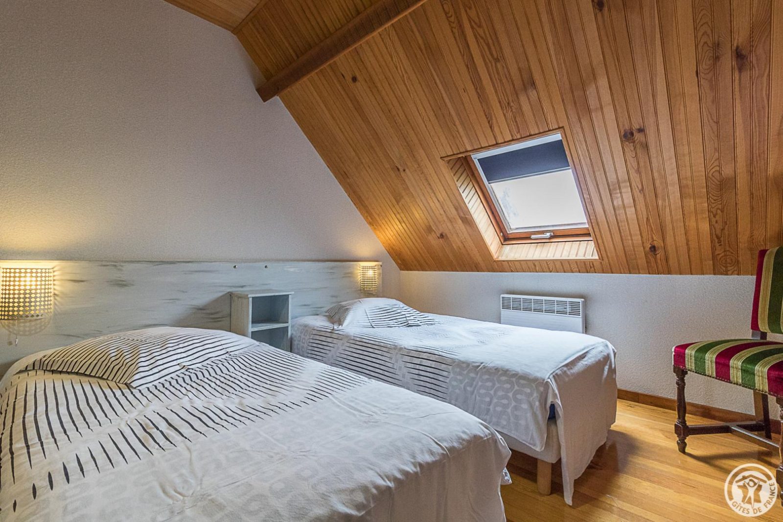 La "Fenêtre sur Superbagnères", c'est un gîte pour 4 personnes aménagé au premier étage de la maison des propriétaires. Le gîte bénéficie d'une entrée indépendante et d'une terrasse privative en rez-de-jardin (extérieur entièrement clos), fleurie et agréable, pour profiter des beaux jours et manger dehors. Un petit local permet de ranger les skis. Le stationnement (gratuit) se fait le long de l'avenue. Le gîte est situé dans un quartier résidentiel, à proximité immédiate des commerces (Intermarché de Moustajon à 750m, Lidl à 850m). Le centre de Luchon (allées d'Etigny) est à moins de 2km, avec ses restaurants, son cinéma, son animation et ses télécabines pour monter à la station de ski de Superbagnères. Le lac de Badech n'est qu'à 1.5km (pique-nique, balade, vélo, pêche et baignade en été). Vous pourrez ici bénéficier des thermes et de tous les loisirs sportifs et culturels proposés par la station pyrénéenne (tarif promotionnel pour les cures = -12%). Vous pourrez aussi profiter de votre séjour pour visiter les alentours : parc de loisirs et d'aventure de Pyrénés-Hô à 16km, Saint-Bertrand-de-Comminges à 32km (village préféré des français), Espagne à 28km. Un escalier extérieur conduit à l'appartement sous combles. La porte ouvre sur la salle de séjour séparée de la cuisine par un bar. Un couloir dessert 2 chambres offrant pour l'une un lit pour 2 personnes en 140cm, pour l'autre 2 lits pour 1 personne en 90cm. La salle de bains/WC se trouve côté cuisine. Chauffage électrique. Connexion Internet Wifi. Matériel bébé à la demande (lit et chaise haute). Le gîte se situe à proximité d'une route passante en journée seulement.