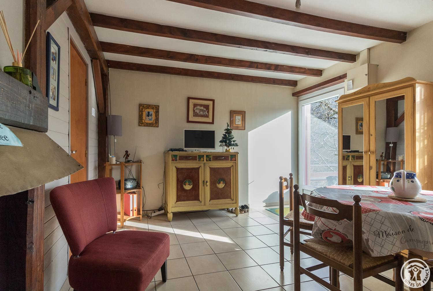 Décoration personnalisée, soin particulier au confort et à l'aménagement. Porte d'entrée du Val d'Aran espagnol qui s'étend au piémont du Luchonnais. Les amateurs de chasse et de brame ne seront pas en reste ! A proximité et à visiter : sites naturels (grottes, lacs, cascades, piste cyclable tout porche des gîtes, nombreux sentier, lacs et sommets pyrénéens) ou construits par l'homme (églises, châteaux, vestiges romains ou médiévaux, villages), dans cette grande zone pastorale forestière vous trouverez producteurs et produits sur les marchés locaux ou à la ferme (viandes, fromages, fruits et légumes, miel et confitures). Accès au chalet par quelques marches (perron et terrasse privative surélevée) : séjour, coin-cuisine, 1 petite chambre double de 7.80m² (1 lit 2 personnes en 140cm), une petite chambre enfants de 6m² (2 lits 1 pers. en 90cm), salle d'eau (sèche-cheveux), WC. Chauffage électrique. commun.