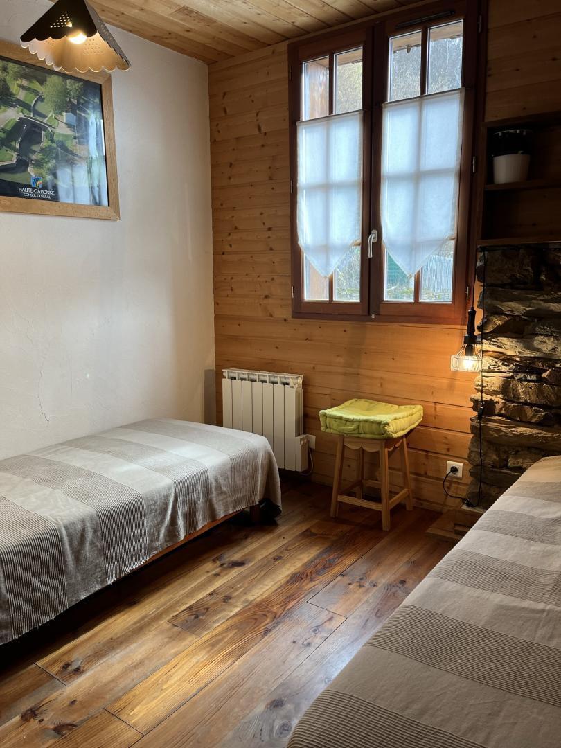 Les Gîtes du Petit Toun, c'est 3 maisons de vacances (5, 6 et 10 personnes) avec piscine chauffée en été en commun au coeur des Pyrénées de la Haute-Garonne ! Idéalement situé, le hameau est à 3km de la rivière de la Pique (pêche), à 9km de Bagnères-de-Luchon (thermes, ski, commerces, cinéma, canyoning, rafting, parapente, équitation, randonnées, col du Tour de France), à 11km du lac du Géry (guinguette, balade) et de Saint-Béat-Lez ainsi que du centre d'escalade et d'accrobranches de Pyrénées-Hô, à 25km des stations de ski du Mourtis, de Peyragudes et de Bourg d'Oueil tout comme de la randonnée du lac d'Oô, et d'un des villages préférés des français, Saint-Bertrand-de-Comminges. Le lac et le golf de Montréjeau sont à 32km. Niché dans un petit hameau de montagne, ce gîte, aménagé dans un esprit montagne très cosy, vous offre une vue magnifique sur le massif pyrénéen. - Rez-de-chaussée : Séjour avec coin-cuisine (intégrée), salon, WC indépendant. - À l'étage : 3 chambres mansardées (1 lit 2 personnes en 140cm) (1 lit 2 personnes en 140cm) (2 lits 1 personne en 90cm), salle de bains/WC. - Extérieur : terrasse privative et jardin commun. Accès pentu (33%) difficile en hiver (équipements obligatoires). Parking privé en contrebas à 50m. Déneigement 2 fois par jour en hiver. Chauffage électrique. Sèche-linge, home-cinéma. Ping-pong, babyfoot, terrain de pétanque et salle de jeux, salle de lecture avec bibliothèque (communs avec les autres gîtes). Ménage inclus.