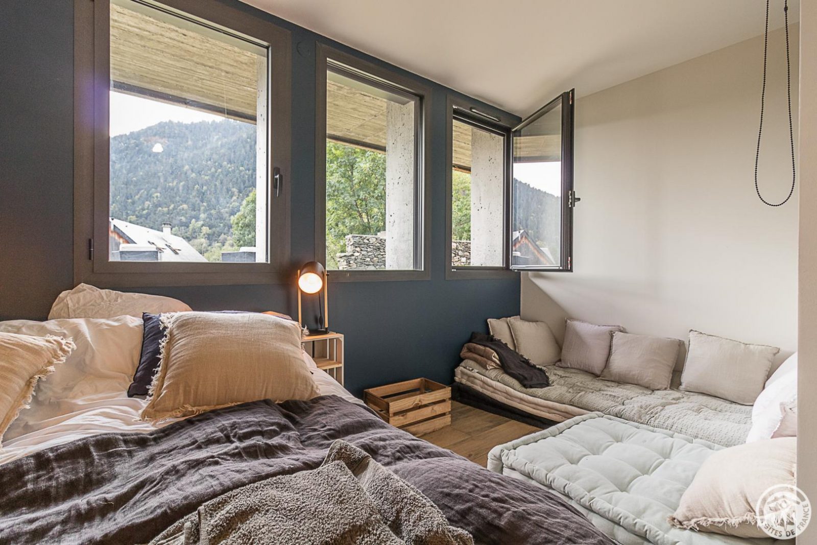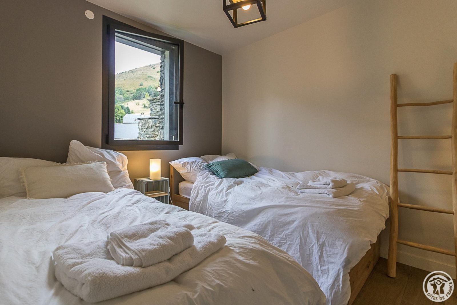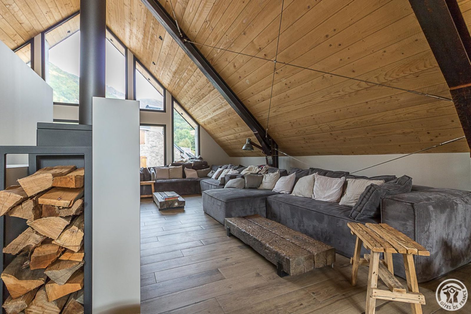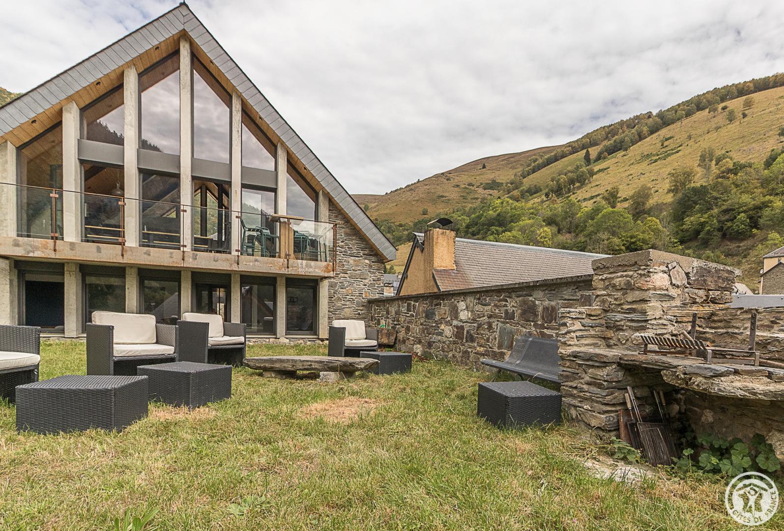 Idéalement située dans le joli village de Mayrègne, en vallée d'Oueil, à 11km au-dessus de Luchon, La Grange de Mayrègne vous accueille pour des séjours au vert, au calme, permettant toutes les activités de pleine nature. Vous aimerez vous y retrouver en famille, le temps d'un week-end ou pour vos vacances, et profiter de son emplacement exceptionnel face à la vallée et aux pics luchonnais. Le panorama sur la montagne depuis le jardin ou le séjour largement vitré est inoubliable. La grange, superbement restaurée met à l'honneur le bois et la pierre, conservant l'esprit du lieu tout en lui apportant confort et modernité. La propriété comprend la Grange et la résidence secondaire du frère du propriétaire. Chaque maison est indépendante et jouit de son propre espace extérieur (seul le portail d'accès est commun). Emplacements de stationnement réservés en bord de route. Local de rangement pour les skis, les vélos... Prêt de 2 luges et de 2 paires de raquettes. Animaux non admis. Gîte sur 2 niveaux, chacun accessible de plain pied : L'étage supérieur est occupé par les pièces de vie : entrée, WC indépendant, superbe pièce de séjour bénéficiant d'un très beau volume, lumineuse avec ses grandes baies vitrées donnant sur la vallée. Le salon accueille plusieurs espaces : le coin-TV, le coin-feu avec son poêle à bois, le coin-jeu (ou télétravail pour les plus studieux !). La cuisine ouvre sur la partie repas qui regarde les montagnes. Un escalier (sans rampe) dessert le niveau inférieur, également accessible depuis la rue (cour). Cet étage est dédié aux pièces de sommeil avec 6 chambres (2 chambres avec 2 lits pour 1 personnes en 90cmx200cm) (3 chambres avec 1 lit pour 2 personnes en 160cmx200cm) (1 chambre avec 1 lit pour 2 personnes en 160x190cm et un coin-détente), une salle de bains avec baignoire et douche, une salle d'eau avec douche, un WC indépendant et un coin-buanderie sous l'escalier. Chauffage au sol par pompe à chaleur. Connexion Internet WIFI et filaire.