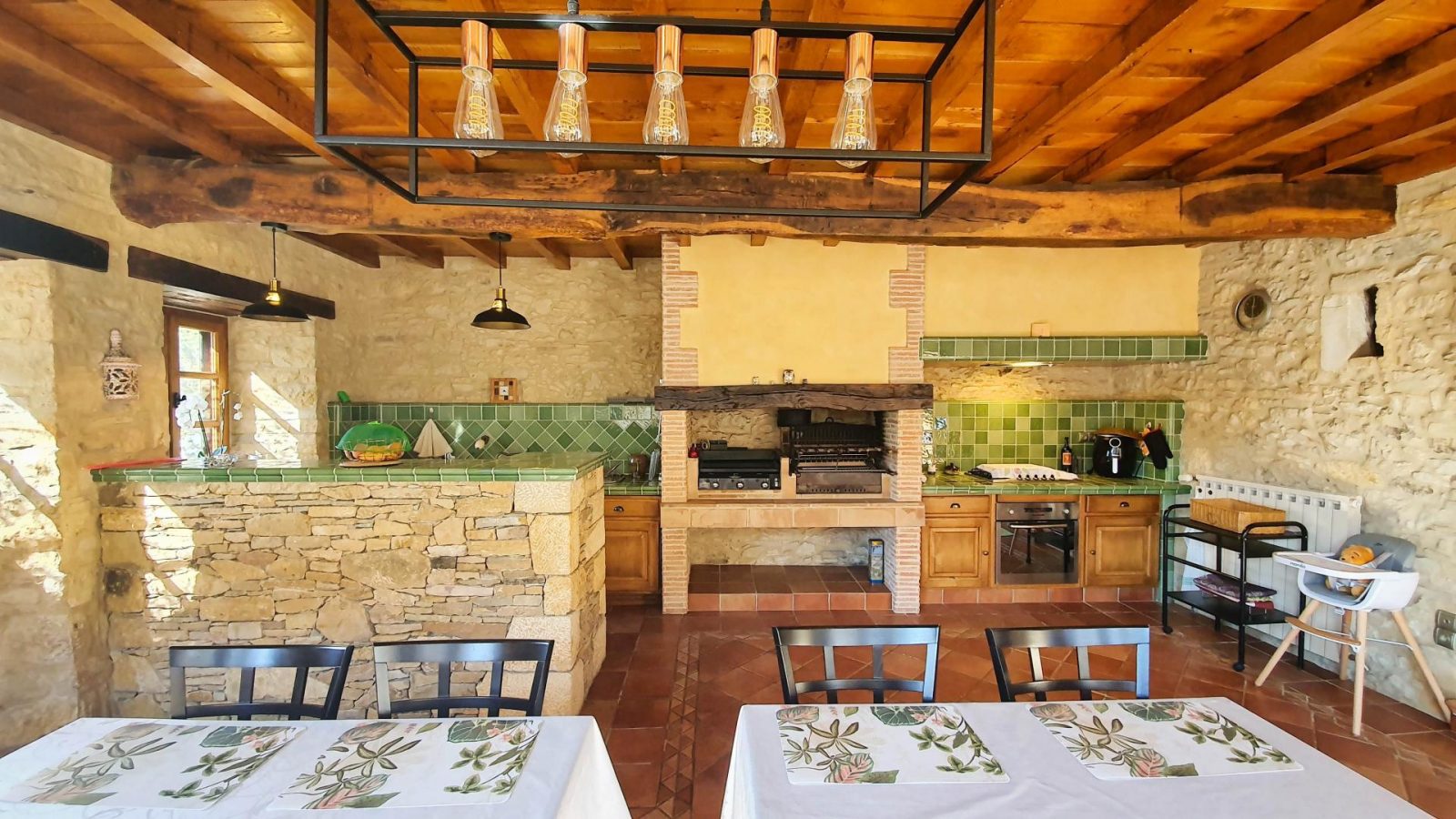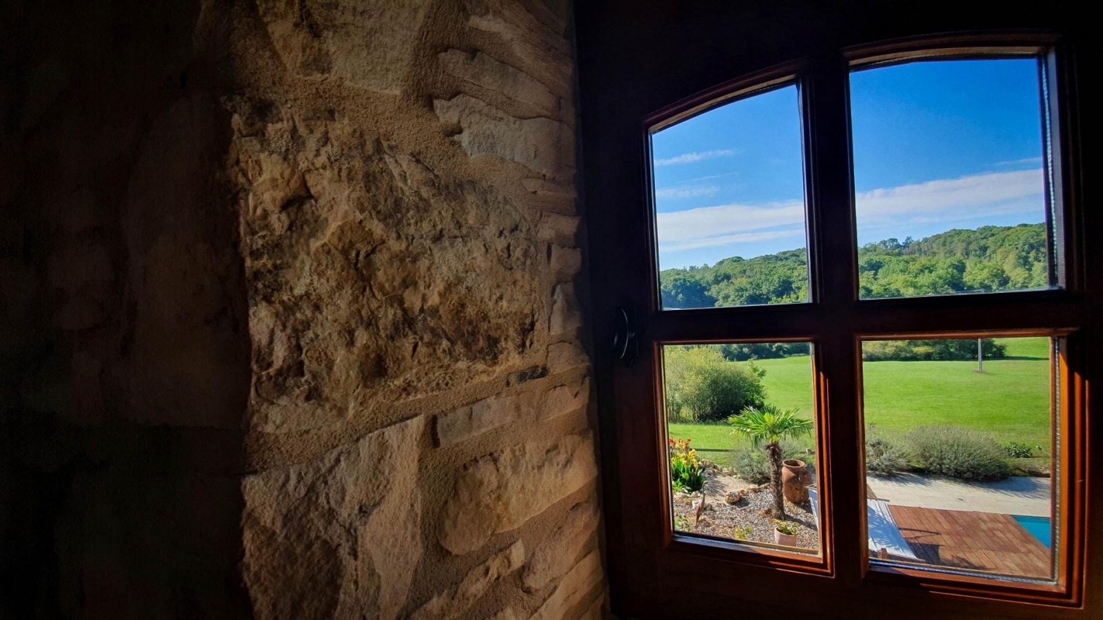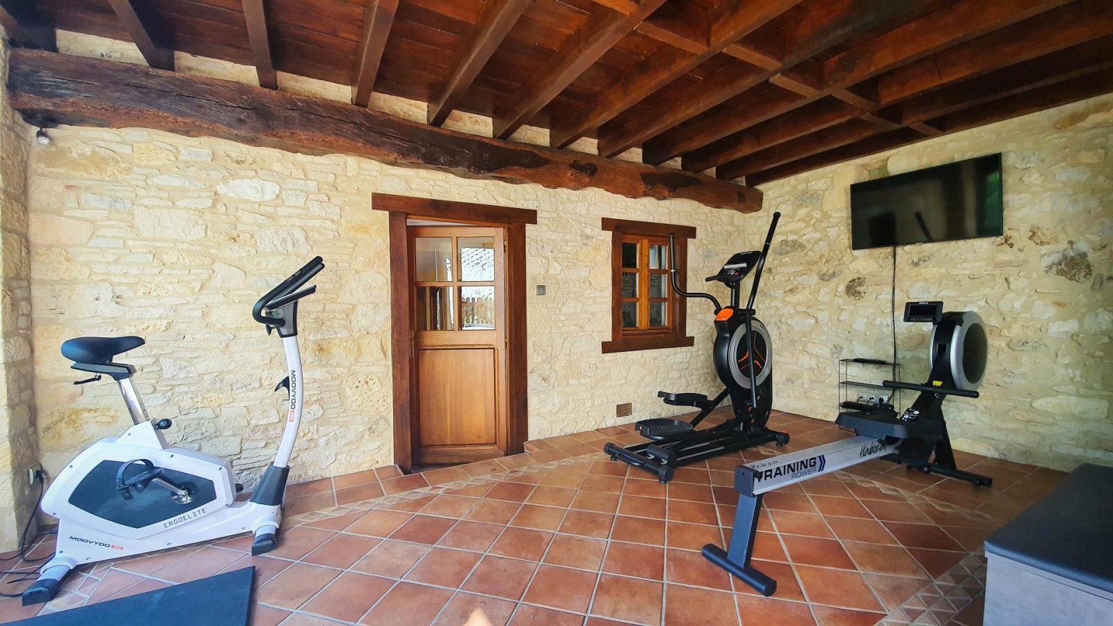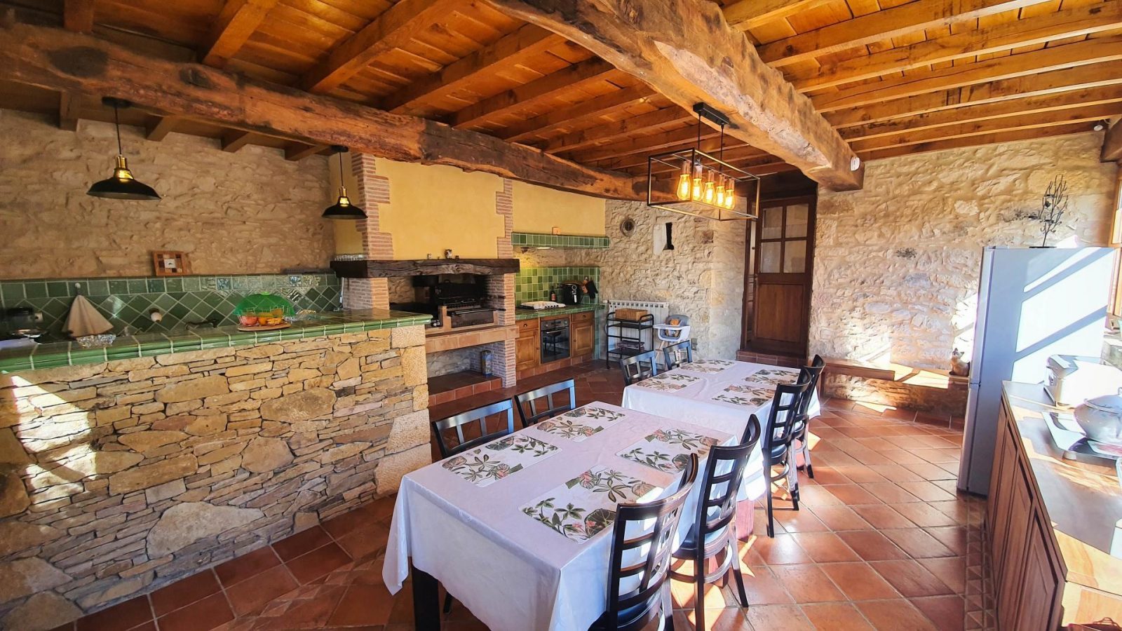 Belle maison de pierre blonde pour 8 personnes avec piscine, jacuzzi et espace de fitness privatifs, beau jardin, terrasse ombragée, vue sur les Pyrénées par temps clair