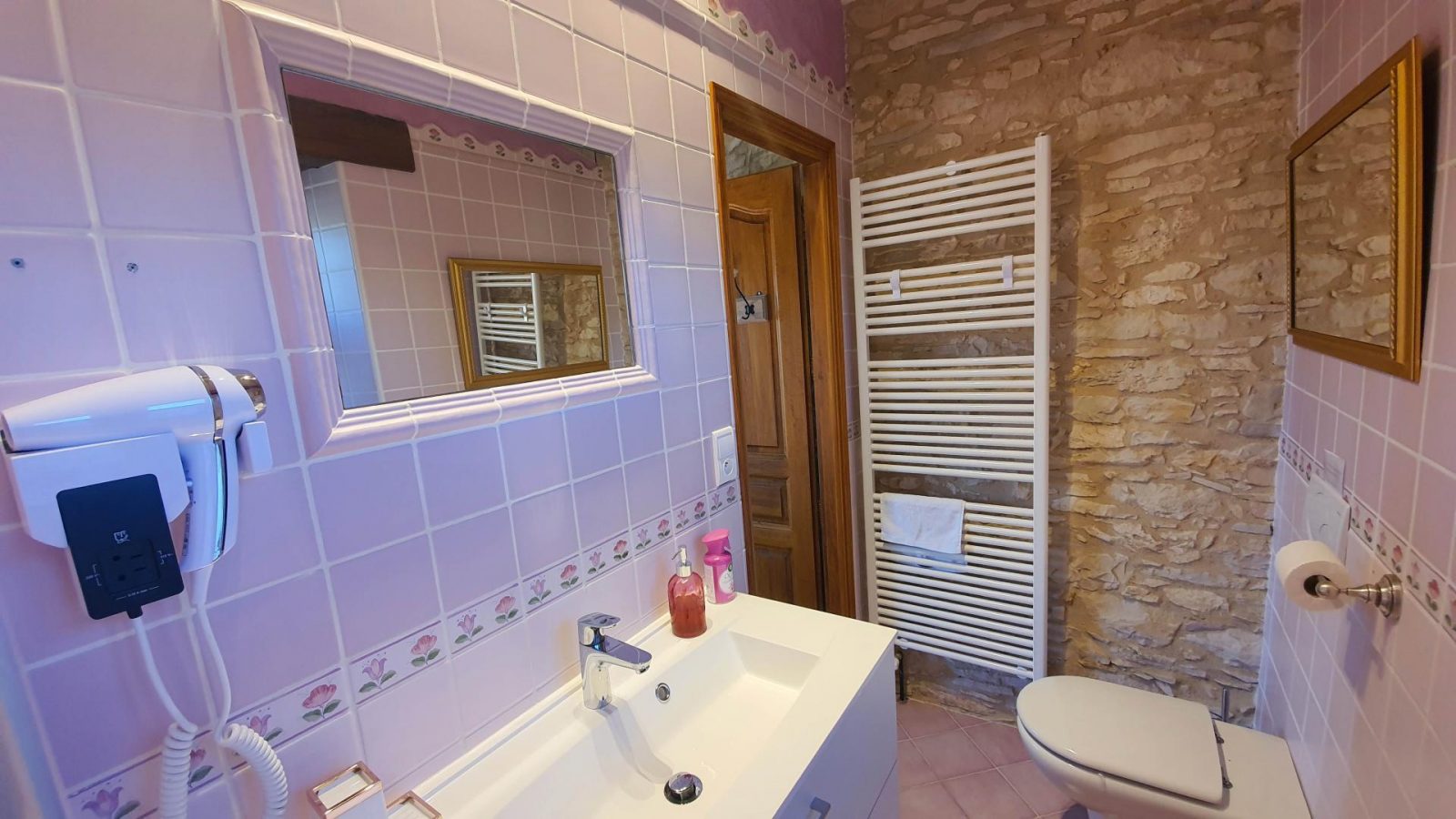 Amoureux de nature, ce gîte de la Grangette est fait pour vous ! Situé en pleine campagne, avec vue imprenable sur les Pyrénées lorsque le temps le permet, vous pourrez ici profiter du calme et prendre soin de vous. Bien que mitoyen de l'habitation des propriétaire, le gîte dispose d'un jardin fleuri privatif avec une piscine 4.50x9m sécurisée par une barrière, un jacuzzi extérieur (gratuit de juin à septembre, 20€ la séance les autres mois de l'année), un ping-pong. Un espace fitness (vélo, vélo elliptique, rameur) complète les prestations proposées. ( équipements sportifs à partir de 14 ans seulement , sous la surveillance des adultes.) Une belle terrasse avec pergola ombragée accueille vos repas, barbecue. Stationnement dans la propriété. Animaux non admis. L'aménagement de La Grangette est atypique. L'espace de jour est situé en RDC, accessible depuis le parking par quelques marches qui descendent. L'entrée se fait par une salle de fitness, prolongée par un espace détente avec quelques fauteuils, bibliothèque et jeux de société. Ces espaces (fitness et détente) peuvent être empruntés par les propriétaires pour accéder à la buanderie commune (un lave-linge et un sèche-linge sont réservés à la clientèle). Petite salle d'eau/WC. L'espace détente ouvre sur une grande cuisine avec coin-repas qui, elle, est privative aux hôtes, et donne sur la terrasse et le jardin. Le coin-nuit est à l'étage, accessible depuis le parking par quelques marchent qui montent. Une grande terrasse couverte (vue sur les montagnes) accueille un salon de jardin. De là, un couloir distribue 2 chambres accueillant chacune 1 lit pour 2 personnes en 160x200cm et 1 chauffeuse pouvant servir de lit d'appoint pou1 enfant. Le couloir est prolongé par une galerie couverte qui distribue 2 autres chambres, plus petites, avec chacune 1 lit pour 2 personnes en 140x190cm. Chaque chambre dispose d'une télévision et d'une salle d'eau/WC privée. Chauffage par pompe à chaleur.