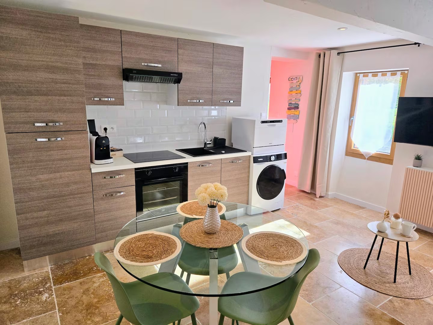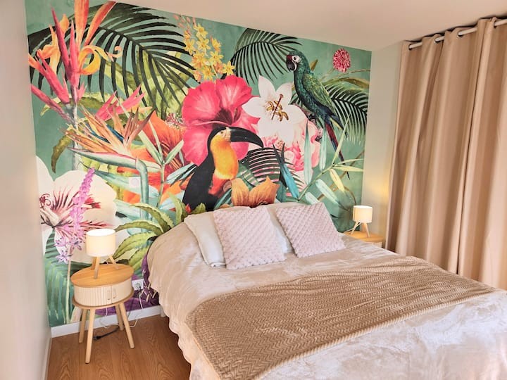 Le logement Au rez-de-chaussée, un salon agréable avec canapé-lit confortable et une cuisine bien équipée pour un séjour pratique. À l’étage, une grande chambre lumineuse et climatisée avec rangements et télévision. La salle de bain spacieuse dispose d’une grande douche, double vasque, WC et sèche-linge. Wi-Fi accessible dans tout le logement et Netflix sur chaque TV. Un petit espace extérieur cosy avec salon de jardin est à votre disposition. Draps, serviettes et produits d’entretien fournis. Ce que propose ce logement Salle de bain, Sèche-cheveux, Produits de nettoyage, Shampooing, Eau chaude, Gel douche, Chambre et linge, Lave-linge, Sèche-linge (Gratuit) dans le logement, Draps Linge de lit en coton, Fer à repasser, Étendoir à linge, Moustiquaire, Espace de rangement pour les vêtements : dressing et placard Divertissement TV HD 43 pouces avec Netflix Famille Lit pour bébé / Lit parapluie : disponible sur demande Draps fournis Livres et jouets pour enfants (Jusqu'à 2 ans, Entre 2 et 5 ans, Entre 5 et 10 ans et Plus de 10 ans) Chaise haute : disponible sur demande Chauffage et climatisation Climatisation Ventilateurs portables Chauffage Sécurité à la maison Détecteur de fumée 1 détecteur par niveau du logement Kit de premiers secours Internet et bureau Wifi rapide (57 Mbit/s) Vérifié par un test de débit. Il est possible de regarder des vidéos 4K en streaming et de participer à des appels vidéo sur plusieurs appareils. Cuisine et salle à manger Réfrigérateur, Four à micro-ondes, Équipements de cuisine de base, Casseroles et poêles, huile, sel et poivre, Vaisselle et couverts, Bols, baguettes, assiettes, tasses, et, . Congélateur, Lave-vaisselle, Four Simple, Bouilloire électrique, Cafetière : Nespresso, cafetière manuelle, Verres à vin, Grille-pain, Plaque de cuisson, Table à manger, Café Caractéristiques de l'emplacement Entrée privée, Entrée par une rue différente ou un immeuble séparé Extérieur Arrière-cour privée / Un espace ouvert du logement généralement recouvert d'herbe / Mobilier d'extérieur / Parking et installations Parking gratuit sur place Services Séjours longue durée autorisés / Séjours de 28 jours ou plus autorisés Arrivée autonome / Boîte à clé sécurisée / Clés remises par l'hôte