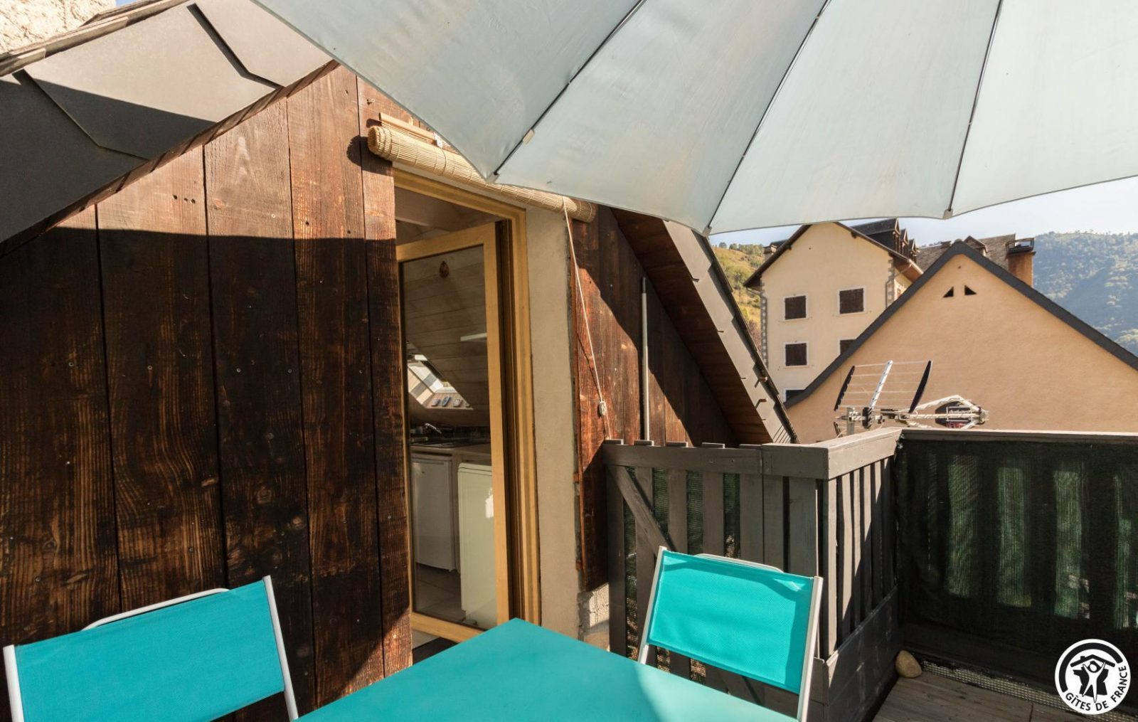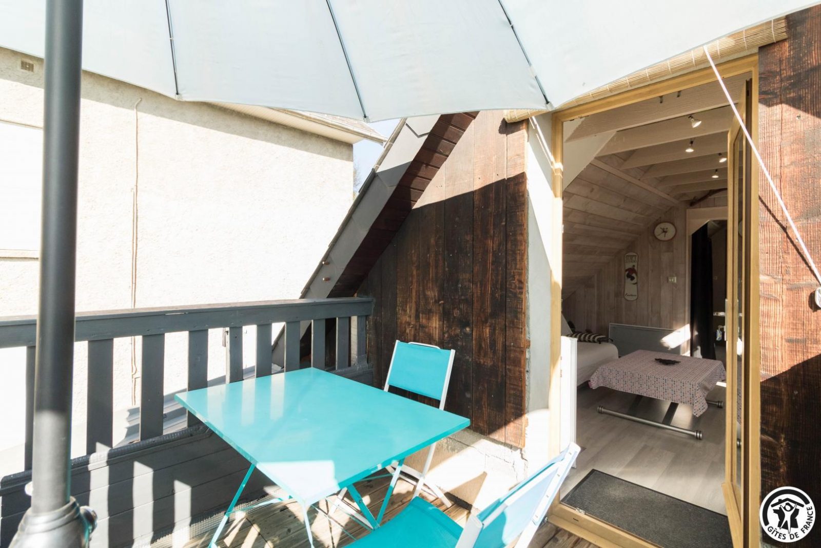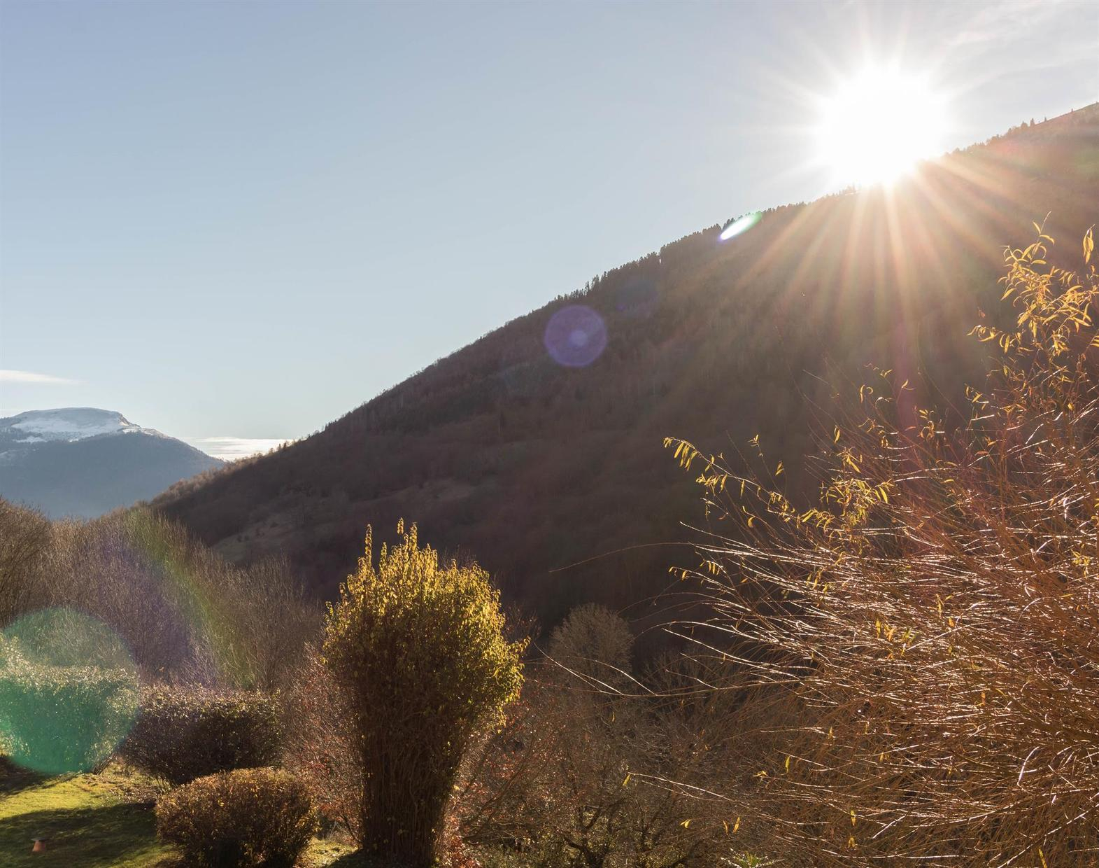 Studio plein sud très lumineux avec petite terrasse et vue spectaculaire sur les montagnes. Rien que pour vos yeux et vos oreilles, biches et brame du cerf au réveil !