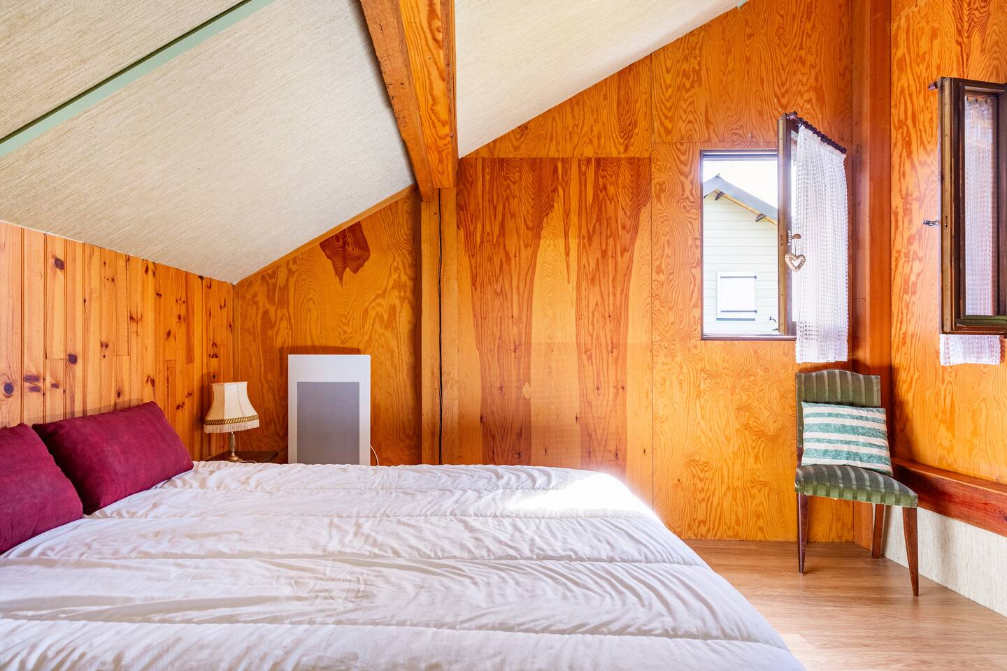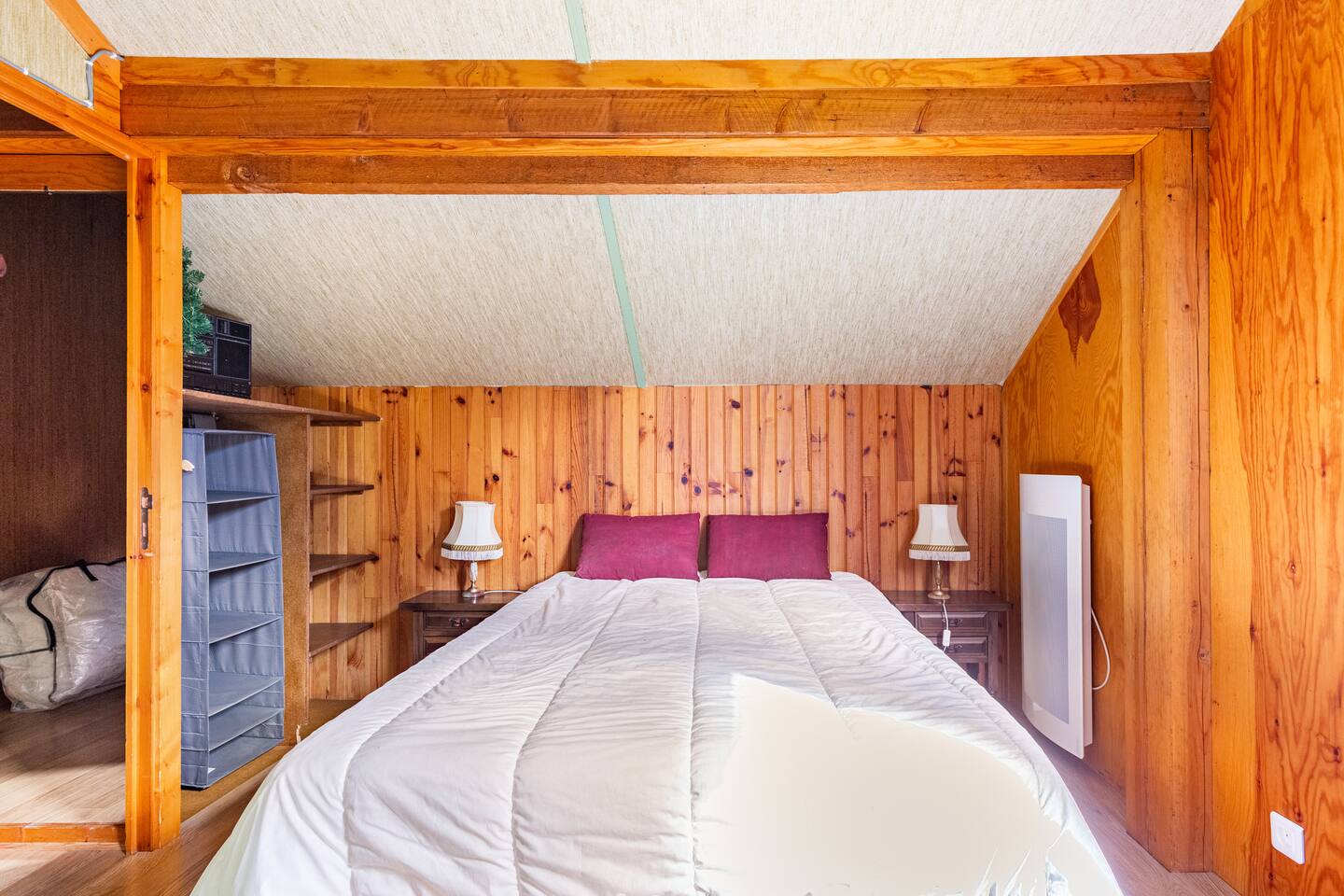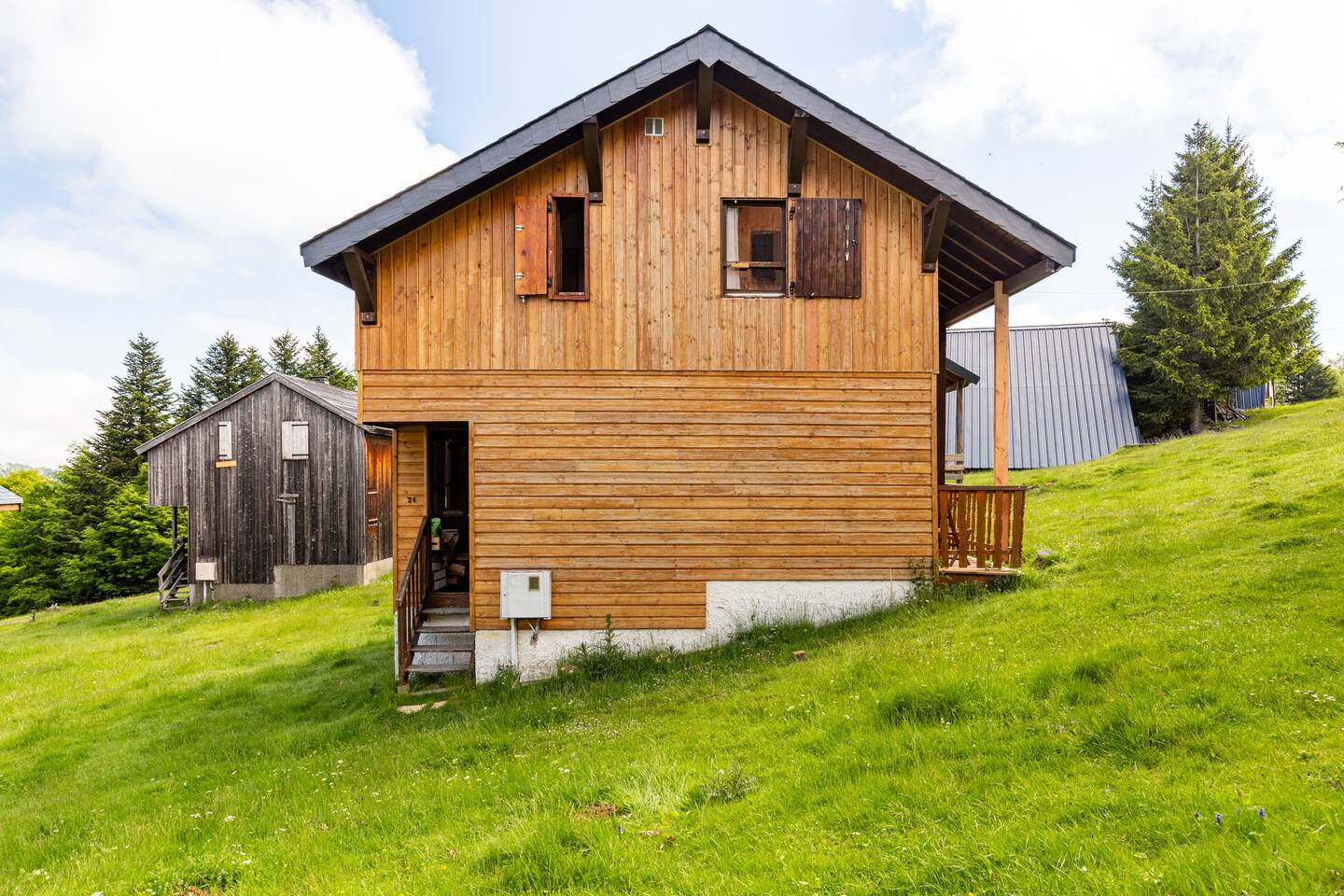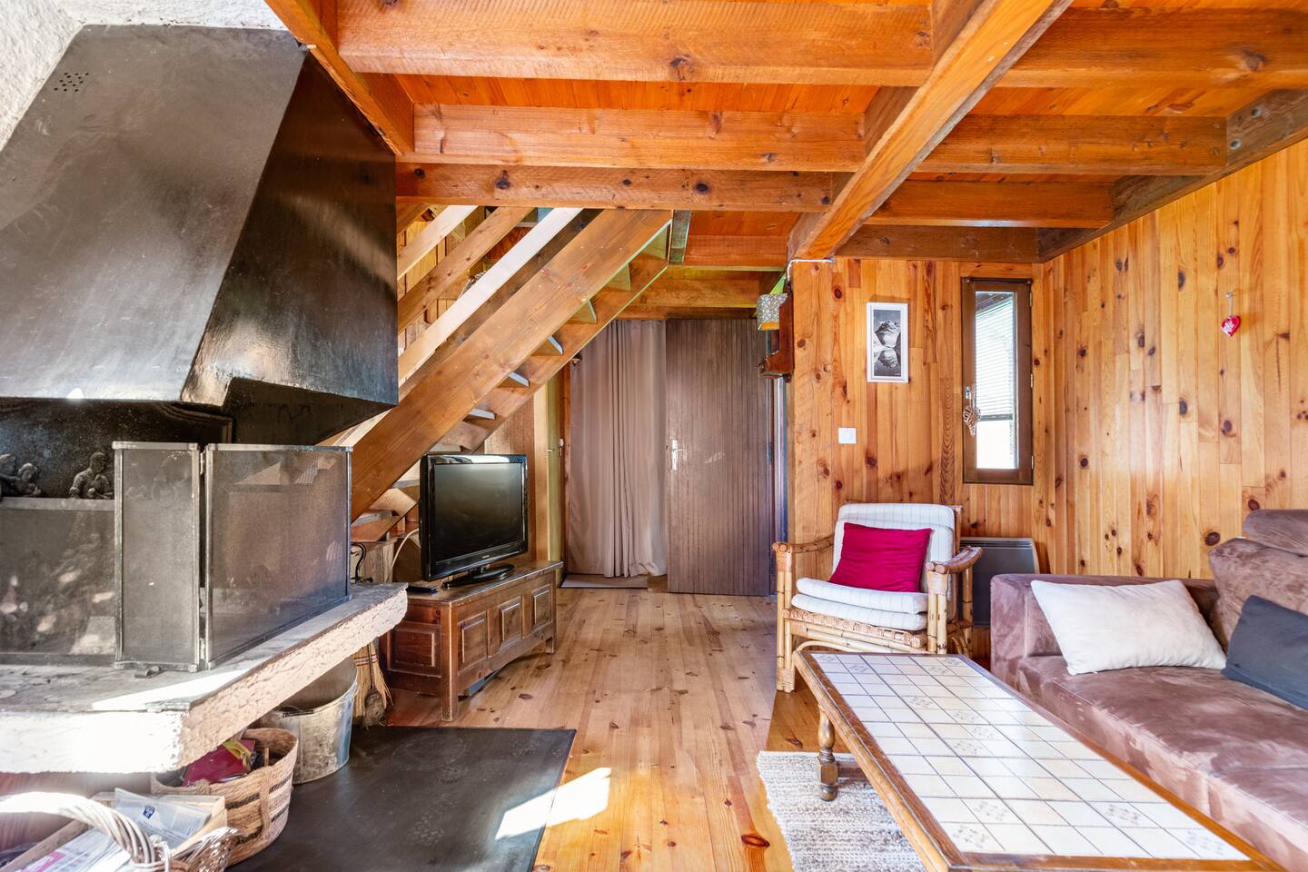 Chalet prévu pour 6 personnes max. + possibilité un lit parapluie. Le logement Le chalet est tout en bois, avec parquet, on y accède par un sas d'entrée ou vous voudrez bien svp déposer vos chaussures. Il comprend au rdc un séjour avec cheminée, canapé, fauteuils et tabourets, tv et box, un wc sur le même niveau et un vestiaire. Un demi-palier au-dessus, la cuisine équipée et son coin repas, une chaise haute pour enfant. La cuisine donne sur la terrasse ou vous pourrez passer vos soirées autour d'une table familiale et d'un barbecue ou bien vos journées sur les transats en admirant le paysage ! A l'étage, trois chambres dont une spacieuse équipée d'un lit de 140x190 avec sur le même palier la salle de bain. Un demi-étage au-dessus, deux chambres l'une avec deux lits superposés 90x190, l'autre avec un lit 140x190. La literie est de très bonne qualité et très confortable. Sont fournis les oreillers et les protèges oreillers de 65x65, les alèzes et les couettes. Le linge : draps, serviettes et torchons ne sont pas fournis, uniquement sur demande avec supplément. Accès des voyageurs Accès à l'entièreté du chalet excepté un dressing privé et fermé. Autres remarques En période automnale et hivernale seulement : cheminée avec bois fourni. Consignes données à l'arrivée Chalet prévu pour 6 personnes et un enfant en lit parapluie, à disposition sur place. Animaux non acceptés sauf exception.