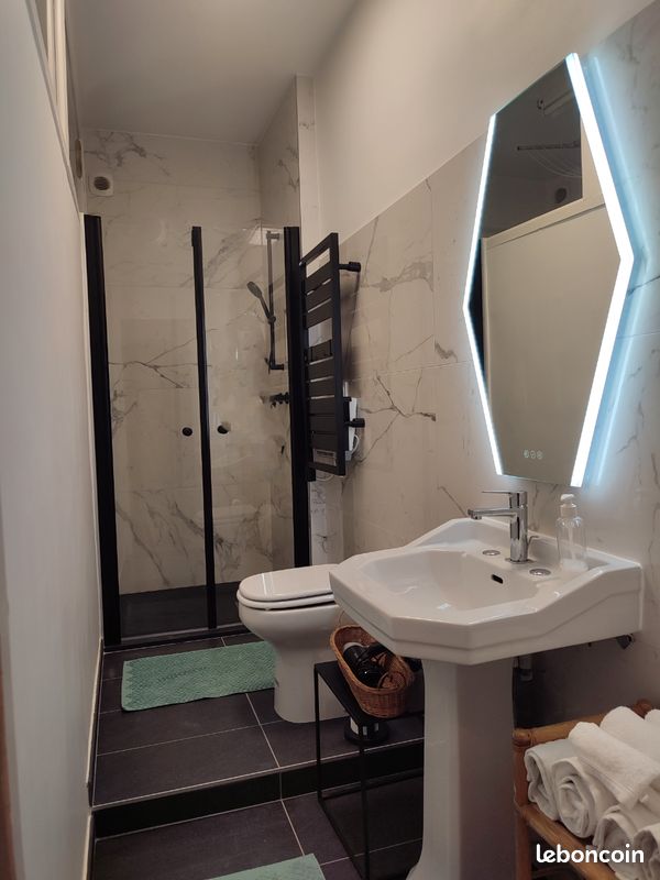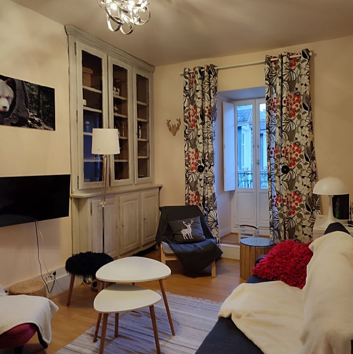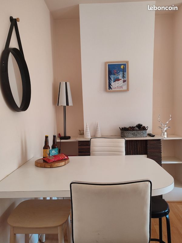 Idéalement situé, dans l'hyper centre, sur les Allées d'Etigny en face de l'Hôtel de ville au 4ème et dernier étage d'un ancien Palace du 19eme siècle avec ascenseur, vous oublierez votre voiture. Vous profiterez d’une vue montagne et de la proximité immédiate (< 100m) de l’office du tourisme, du cinéma , des commerces , restaurants, bornes de rechargement de véhicules électriques, sentiers de randonnées et VTT... Vous rejoindrez, à pied, le télécabine express accédant à la station de ski de Luchon Superbagnères en 2 MNS seulement . Les thermes avec son Vaporarium naturel unique en Europe et son nouvel espace ludique sont à 5 MNS. Amateurs de trail les circuits du L.A.T sont au pied de la résidence. L'appartement comprend : - une entrée, une pièce à vivre avec un canapé convertible en 140. - une chambre avec lit 140 et dressing. - une cuisine indépendante toute équipée. - une salle de bain avec WC. Parking sécurisé 5 € par jour.