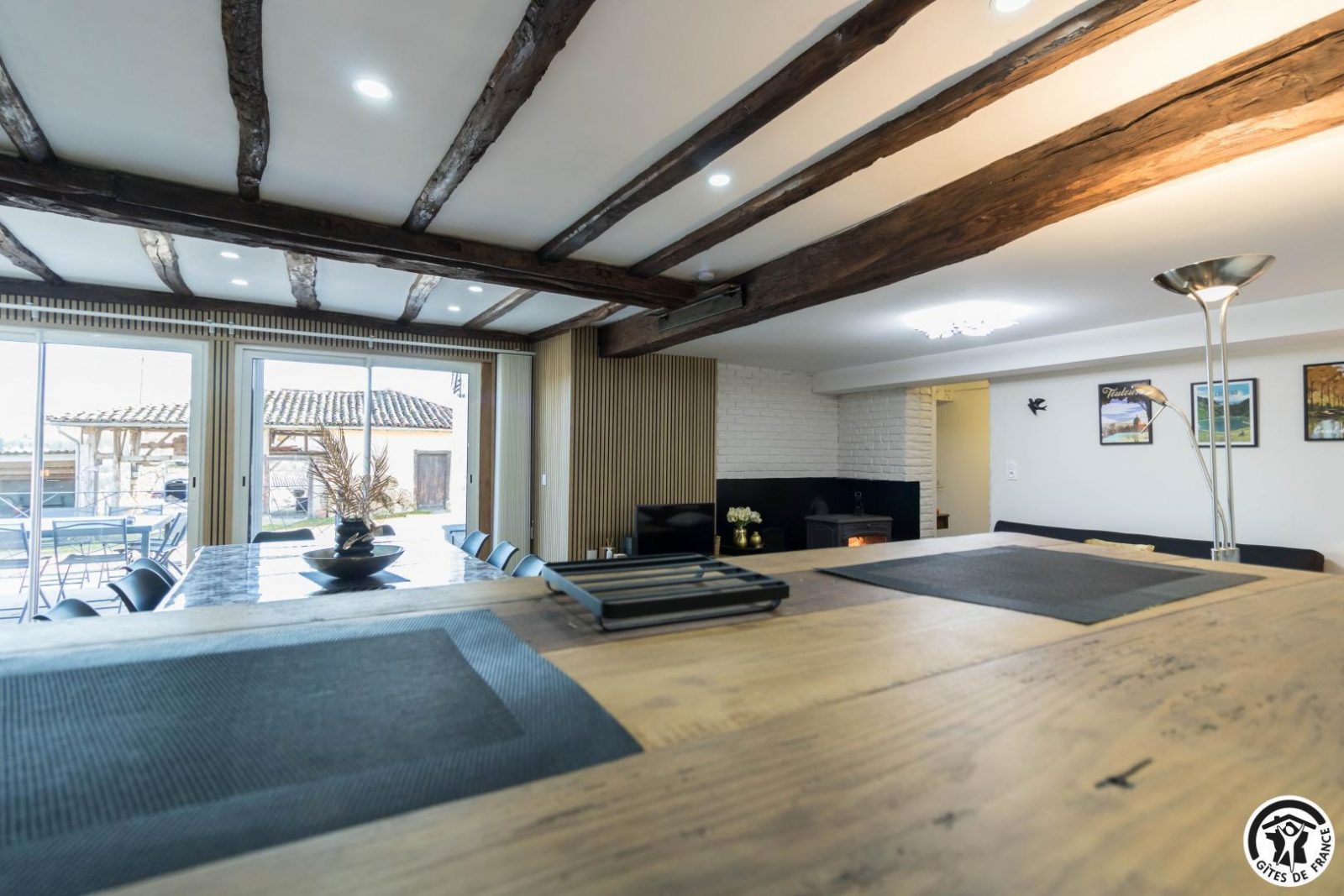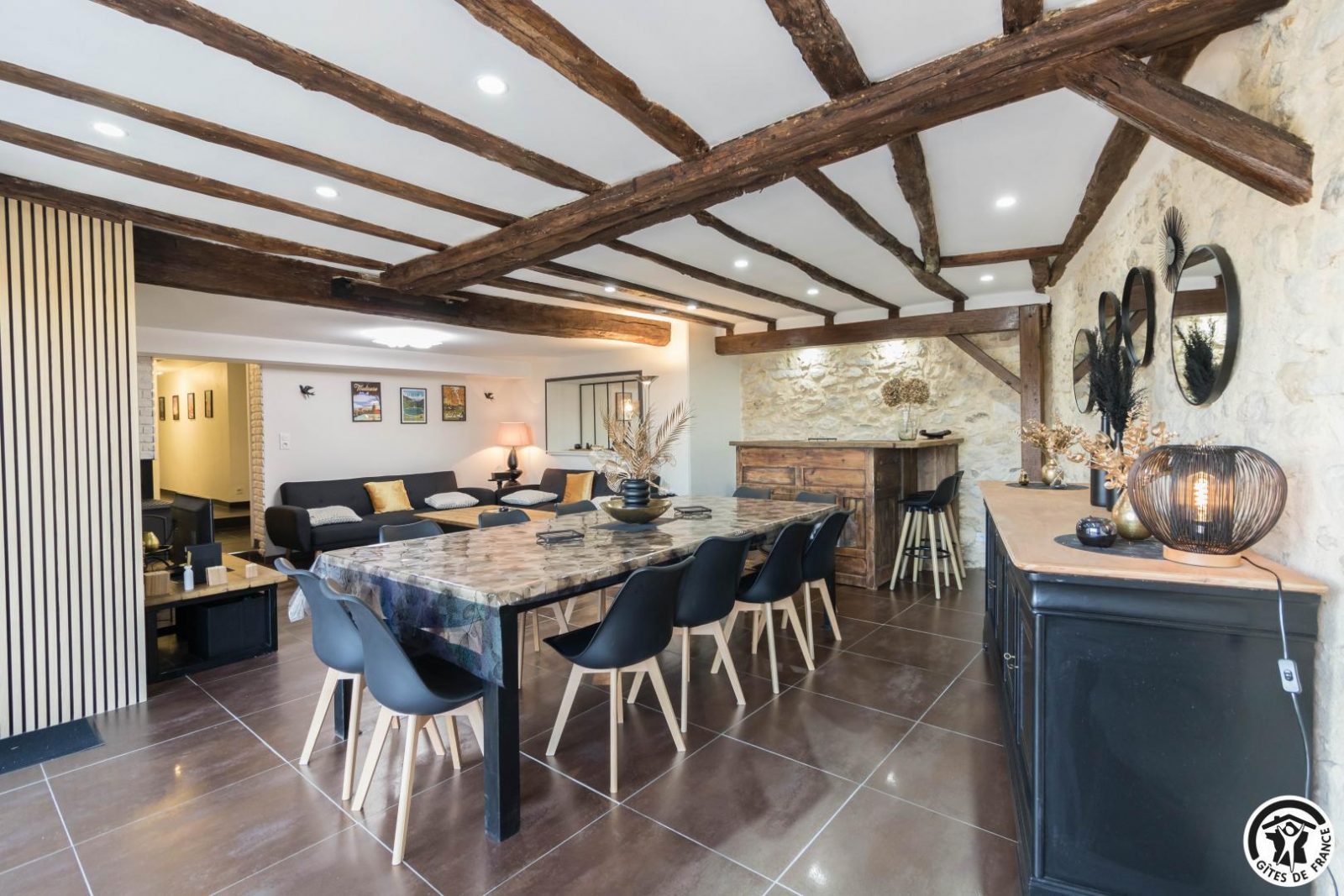 Niché au coeur de la campagne pyrénéenne, issu d'une ancienne ferme familiale, sa façade en pierres et au teint blanc cassé, typique de la région, donne le ton dès l'arrivée : ici, l'authenticité se conjugue avec raffinement. À l'intérieur, l'harmonie des matériaux naturels et la décoration soignée créent une atmosphère chaleureuse et accueillante. Et pour des moments de détente absolue, une piscine privative vous attend dans un écrin de verdure, ainsi qu'un petit terrain de football et des boules de pétanque. Situé à Cassagne, un charmant village au centre de la région Occitanie, ce gîte est idéalement placé pour explorer les richesses du Comminges. Que vous soyez amateurs de patrimoine, de nature ou de gastronomie, les environs regorgent de trésors à découvrir. Vous serez au départ de chemins de randonnée depuis le gîte. À quelques kilomètres seulement, laissez-vous séduire par des expériences uniques : les thermes de Salies-du-Salet (6.4km) ; Martres-Tolosane (14.3km), connu pour sa faïence et son village en rond ; le Musée de l'Aurignacien à 20km ; le marché du samedi à Aspet à 27km. Plusieurs Grands Sites de la région Occitanie sont proches : Saint-Betrand-de-Comminges (50km), Saint-Lizier (25km) et Bagnères-de-Luchon (67km). L'Espagne et la station de ski du Mourtis sont à 50km. Le gîte est mitoyen de la maison des propriétaires, au rez-de-chaussée : cuisine (thermomix, appareil à raclette, appareil à fondue), salon/salle à manger, salle de billard, salle de bains, WC séparé. Premier étage : 5 chambres (1 lit double en 160*200cm, bureau)(1 lit double en 160*200cm, bureau)(1 lit double en 160*200cm, mansardée avec une chambre bébé)(1 lit double en 140*190m, bureau)(1 lit double en 140*190cm et 2 lits simples en 90*190cm, bureau), salle d'eau/WC (entre le dortoir et la chambre bébé), espace baby-foot et espace bibliothèque. Un abris voiture est accessible entre le gîte et la piscine. Côté piscine, vous pourrez savourer de délicieux déjeuners à l'ombre.