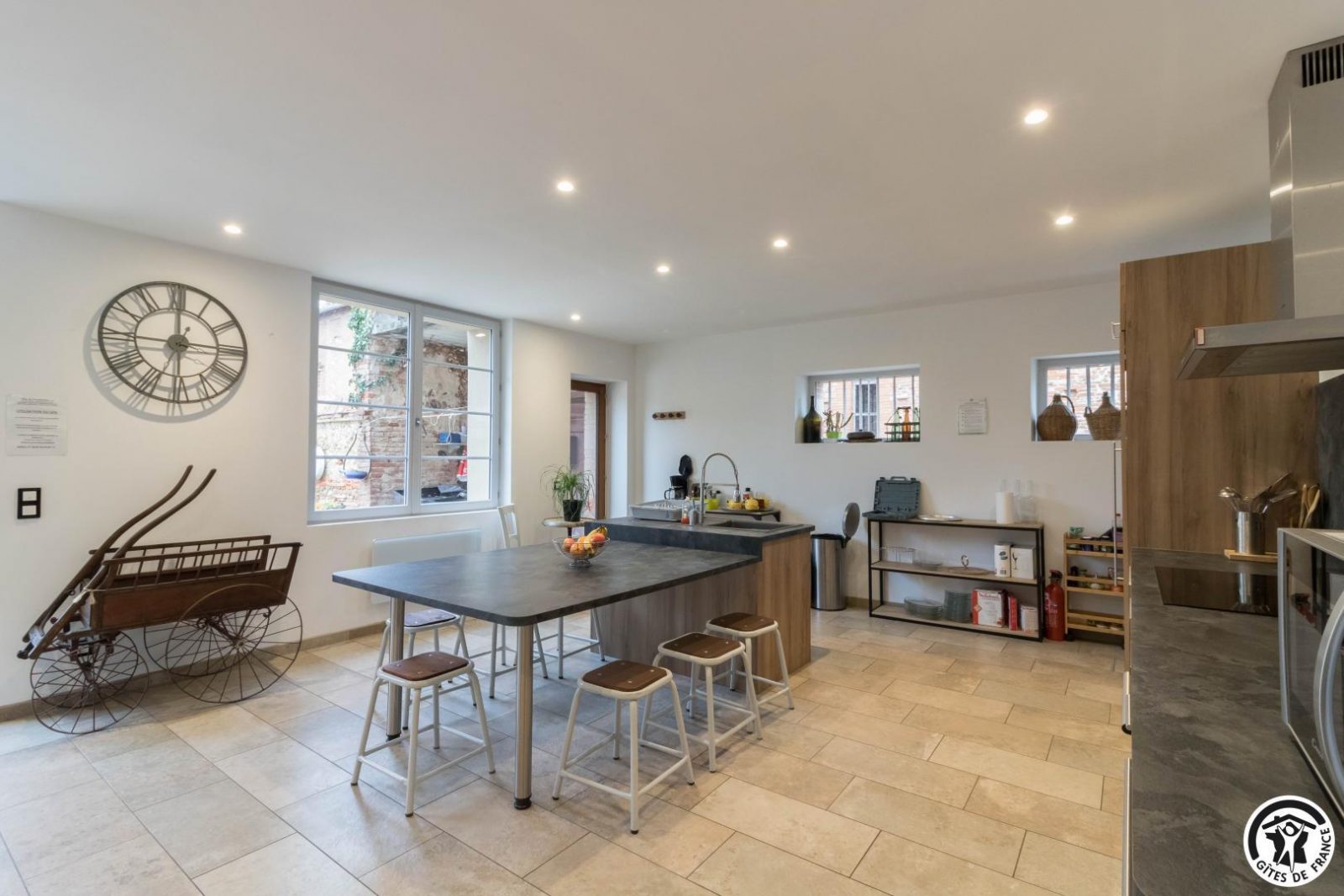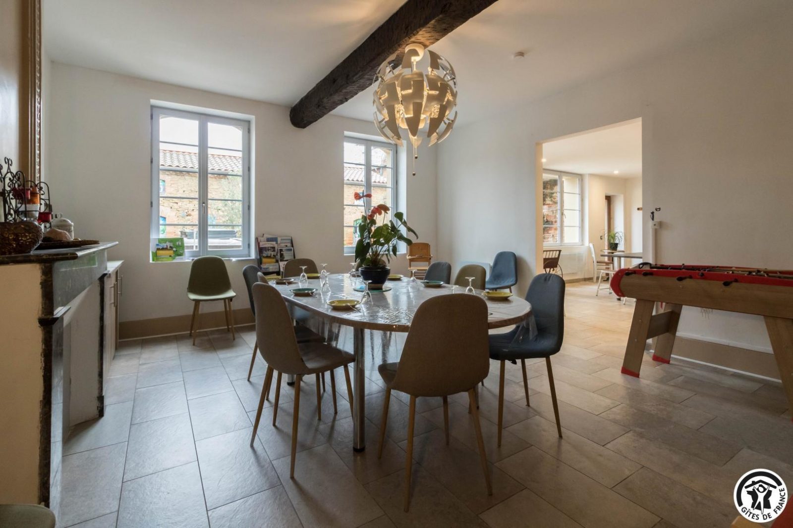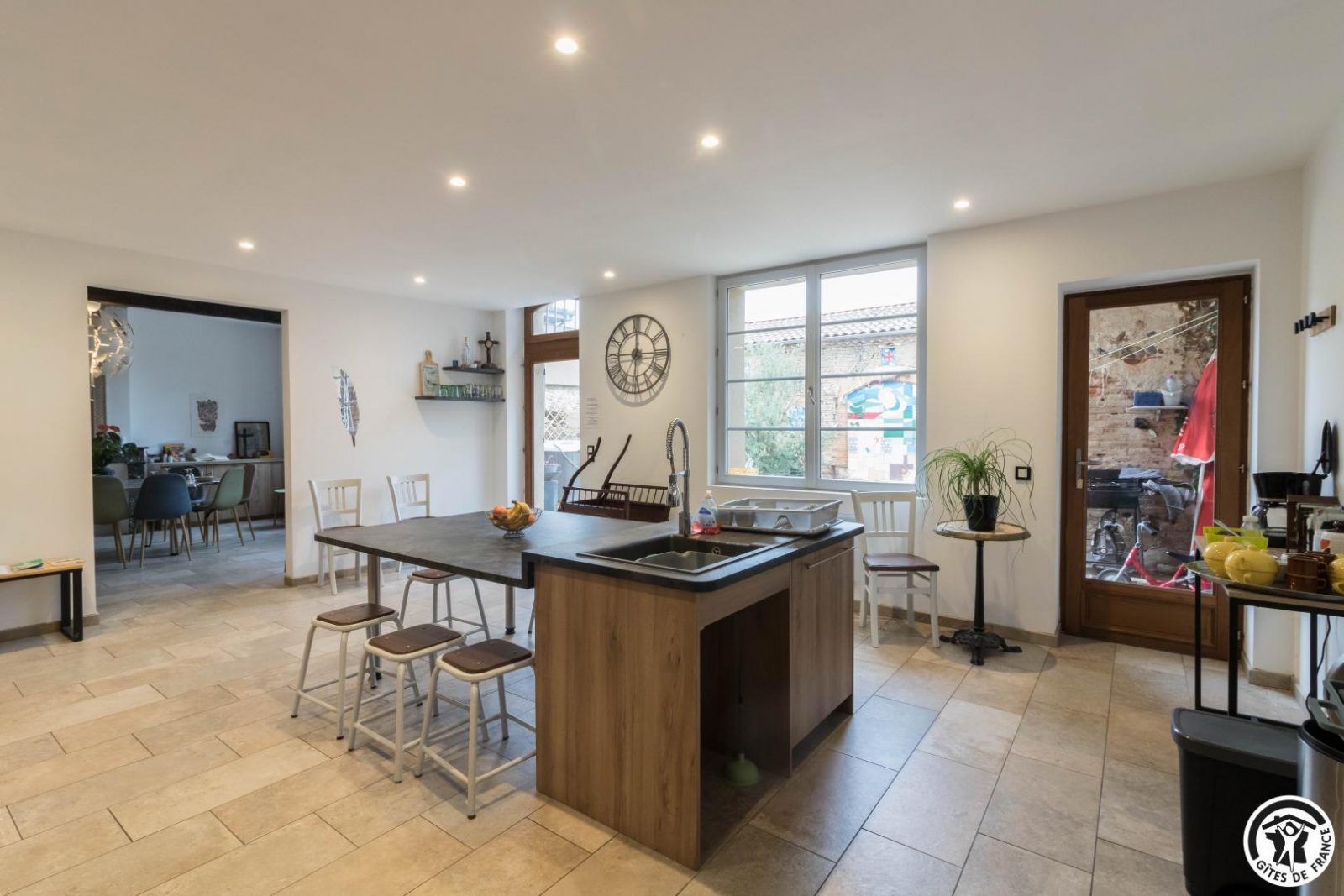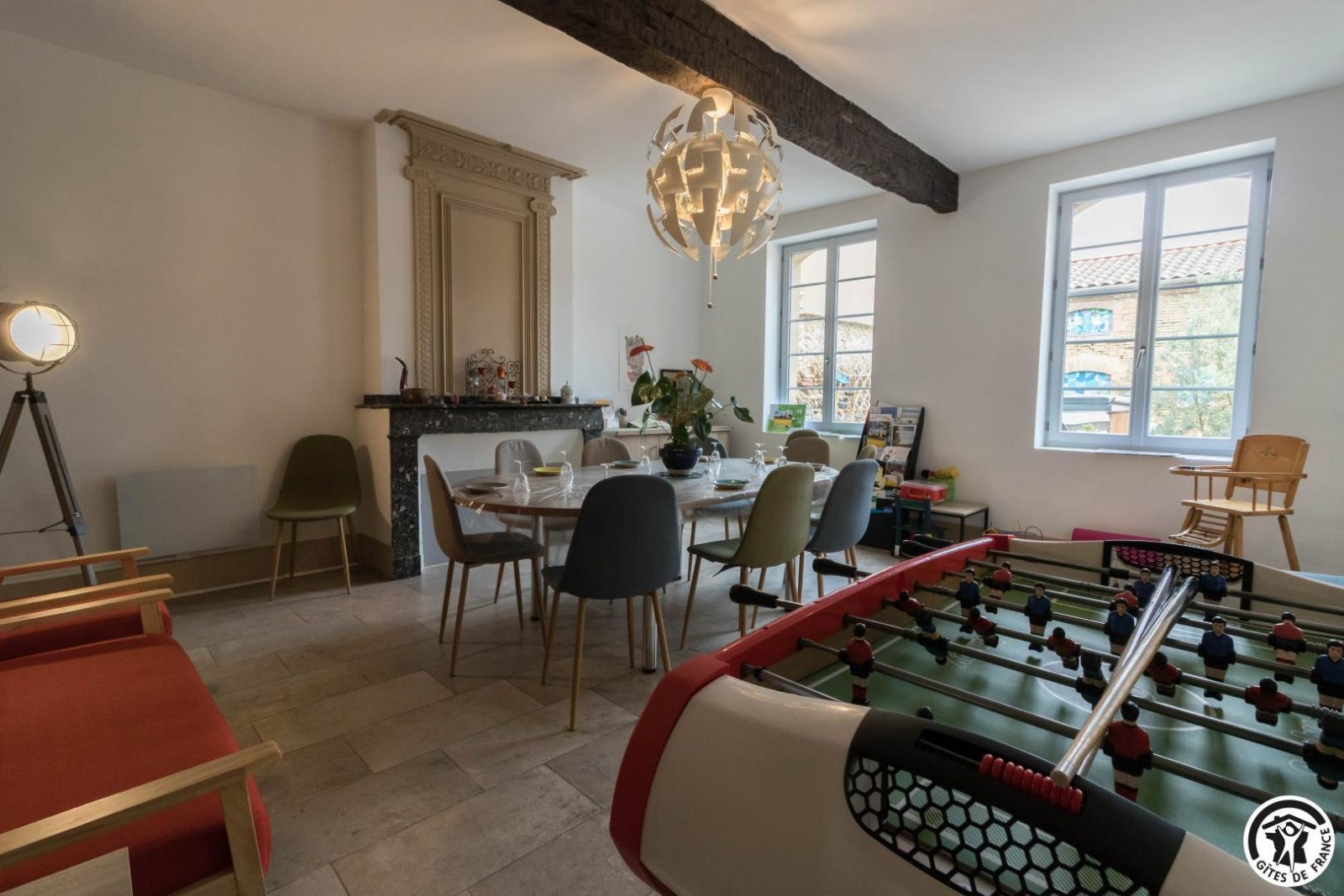 Ancienne bâtisse pour 12 personnes, 3 épis, à Saint-Sulpice-sur-Lèze et mitoyen de l'hôtel-restaurant des propriétaires, accueille groupes et familles. Sera le lieu idéal pour partager des moments conviviaux et profiter de la vie de village . Gîte accessible aux personnes à mobilité réduite. Nombreuses visites possibles alentours, randonnées... Accès au spa inclus dans la location (cf. dates d'ouverture). Au rez-de-chaussée : large couloir distribuant une belle cuisine ouvrant sur le jardin, une salle à manger, une chambre accessible aux personnes à mobilité réduite (1 lit pour 2 personnes en 140cm) avec sa salle d'eau/WC privative, une chambre (1 lit pour 2 personnes en 160cm) avec sa petite salle d'eau/WC. A l'étage : salon de détente, 2 chambres (1 lit pour 2 personnes en 140cm) (1 lit pour 2 personnes en 140cm + lit bébé) avec salle d'eau/WC commune, un dortoir (4 lits pour 1 personne en 90cm) avec salle d'eau. Chauffage électrique. Jardin clos à l'arrière. Pas d'accueil après 19h30. SPA du 1er mars au 15 septembre, faire une demande en dehors de ces dates.