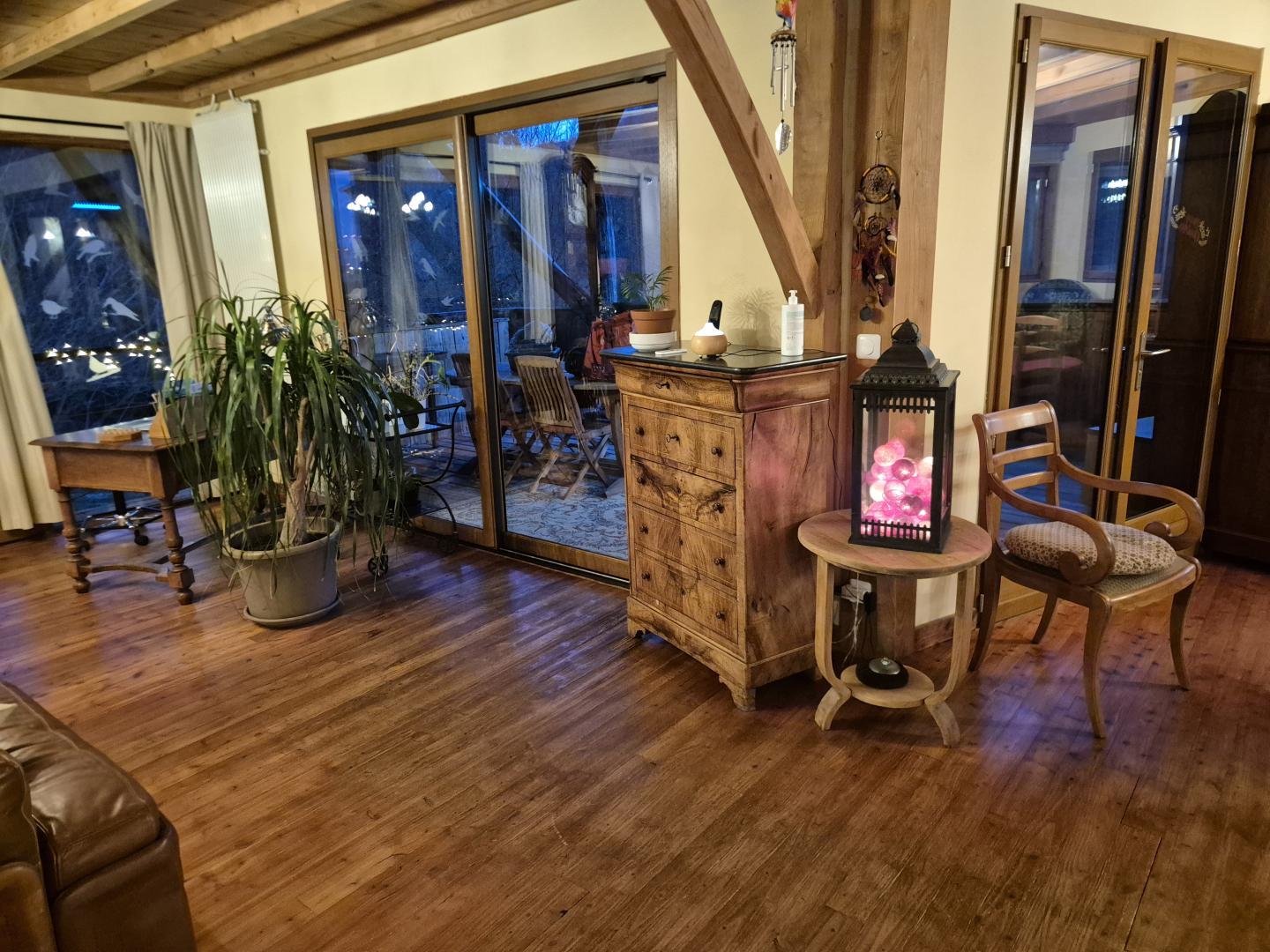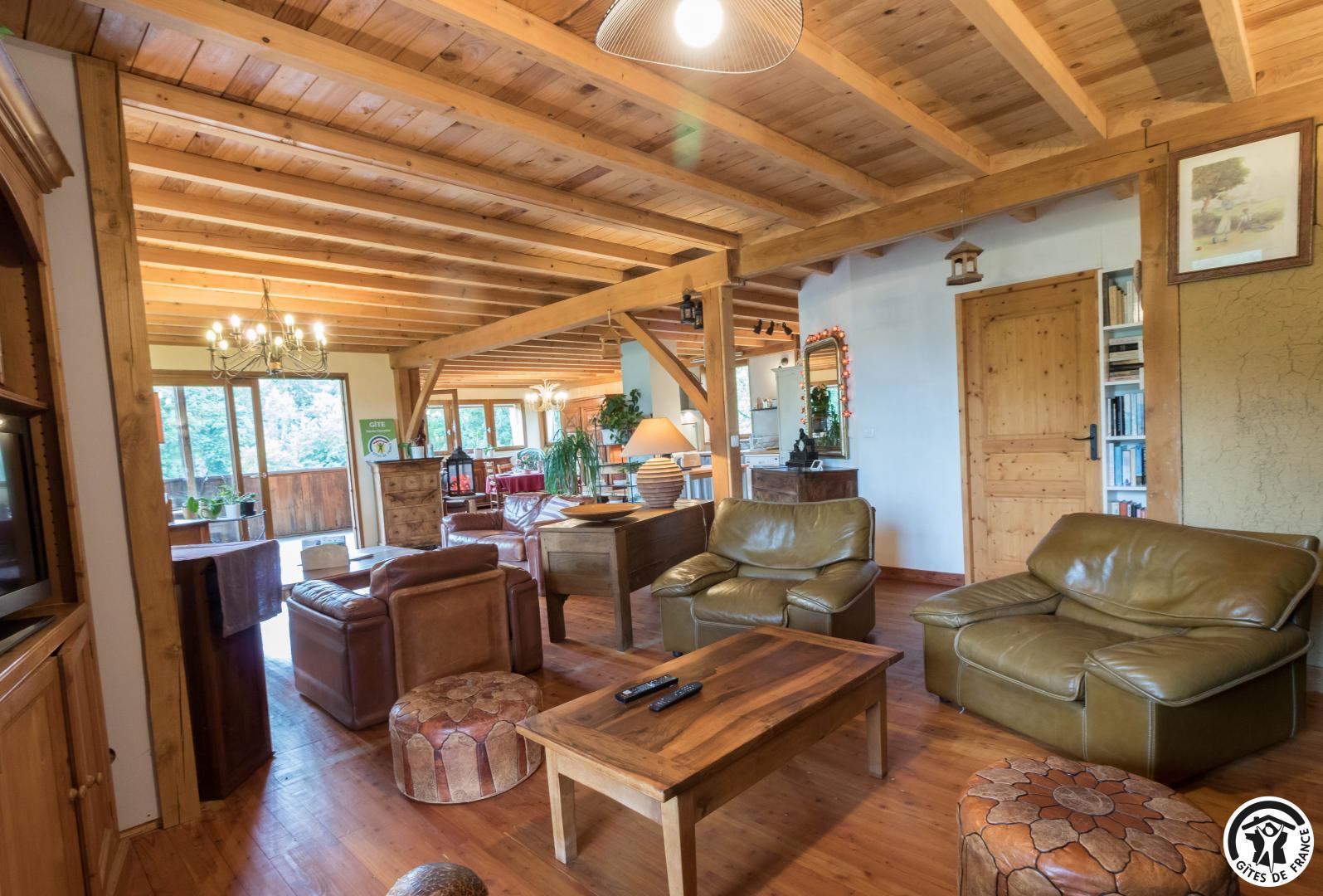 Offrez-vous un séjour unique eco responsable en bois dans une maison de vacances baignée de lumière grâce à ses larges baies vitrées et chauffé au poêle à pellets, ce cocon mêle confort moderne et authenticité. Un bouquin depuis la terrasse, en face de la silencieuse forêt du propriétaire pourrait faire partie de votre programme farniente... Profitez d'un jardin clos de 2500 m², de 5 hectares de prairies avec deux chevaux en liberté et d'arbres fruitiers à déguster au fil des saisons. Idéal pour les familles, les amoureux de nature et les voyageurs en quête de déconnexion. À deux pas : Salies-du-Salat (thermes et bien-être), Saint-Gaudens (marché et patrimoine), Saint-Lizier (cité classée UNESCO), les stations des Pyrénées pour vos randonnées et activités d'hiver, sans oublier Toulouse, la « Ville Rose », à seulement 1h. Vous serez aussi dans la Vallée de l'Ours : parapente à 5km et randonnée de la Cascade de Planque à 7km. 3 chambres confortables (1 lit en 140*190cm)(1 lit en 140*190cm)(1 lit en 110*190cm), 2 salles d'eau dont 1 avec WC, des WC indépendants, une buanderie (lave-linge et congélateur), une pièce de vie chaleureuse et lumineuse avec cuisine équipée (four micro ondes multifonctions et mini four rôtissoire) : tout est réuni pour des vacances inoubliables au pied des montagnes. Pas de porte entre la chambre au lit simple et le couloir menant au salon. Chauffage par chaudière à pellets. Eau chaude par panneaux solaires (ou chaudière). C'est la résidence principale du propriétaire, plusieurs placards contiennent ses affaires et sont fermés.Caméra de vidéo surveillance pour le parking de la propriété.