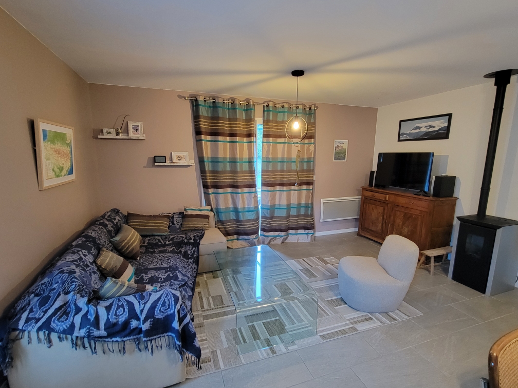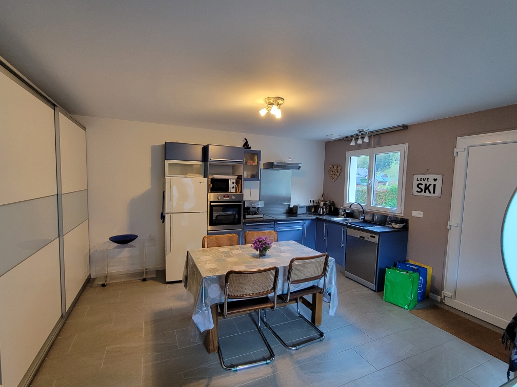 Chalet de plein pied composé d'une pièce de vie 40m2 avec baie vitrée et terrasse ombragée, salle de bain, buanderie, 2 chambres abri vélos, ski… Idéal pour les randos, le ski, la cure, le golf…