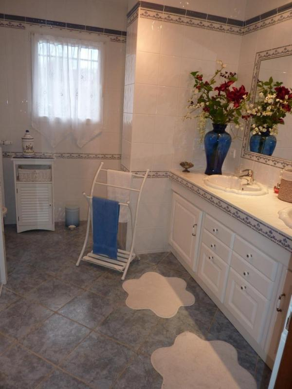 Aux portes des Pyrénées, dans un quartier résidentiel de Villeneuve-de-Rivière, villa récente de plain-pied orientée plein sud, très bien équipée et décorée avec soin. Terrain clos de 1000m² avec un aménagement paysager coquet et deux terrasses dont une couverte plein sud avec vue sur la chaîne des Pyrénées, d'où nous pouvons apercevoir le Pic du Gar et le Cagire. Cour, garage (portails électriques). A 2km du fleuve de la Garonne (étape de randonnée de la ViaGarona, chemin de Saint-Jacques-de-Compostelle) et à 5km de Saint-Gaudens (commerces, restaurants, Parc des Exposition, cinéma). Aspet (20km), Luchon (45km) et Saint-Bertrand-de-Comminges 17km. Randonnées pédestre, activités et visites vous sont proposées dans les alentours : Gorges de la Save à 18km (baignade), lac et golf de Montréjeau à 10km, Forêt Arboretum de Cardeilhac à 11km, Musée de Montmaurin à 15km et Abbaye de Bonnefont en Comminges à 22km. Gîte de plain-pied : hall d'entrée, cuisine intégrée ouverte sur le salon et le séjour (TV Grand écran LED diagonale 126cm ), WC avec lave-mains, salle d'eau (douche à l'italienne) sèche-cheveux, fer à lisser, 3 chambres (2 lits 1 personne en 90cm) (1 lit 2 personnes en 140cm, TV dans la chambre) (1 lit 2 personnes en 140cm). Chauffage avec pompe à chaleur. Animaux acceptés (gratuitement) sous conditions après concertation avec les propriétaires : chats non acceptés. Paiements par chèques, virements ou espèces acceptés