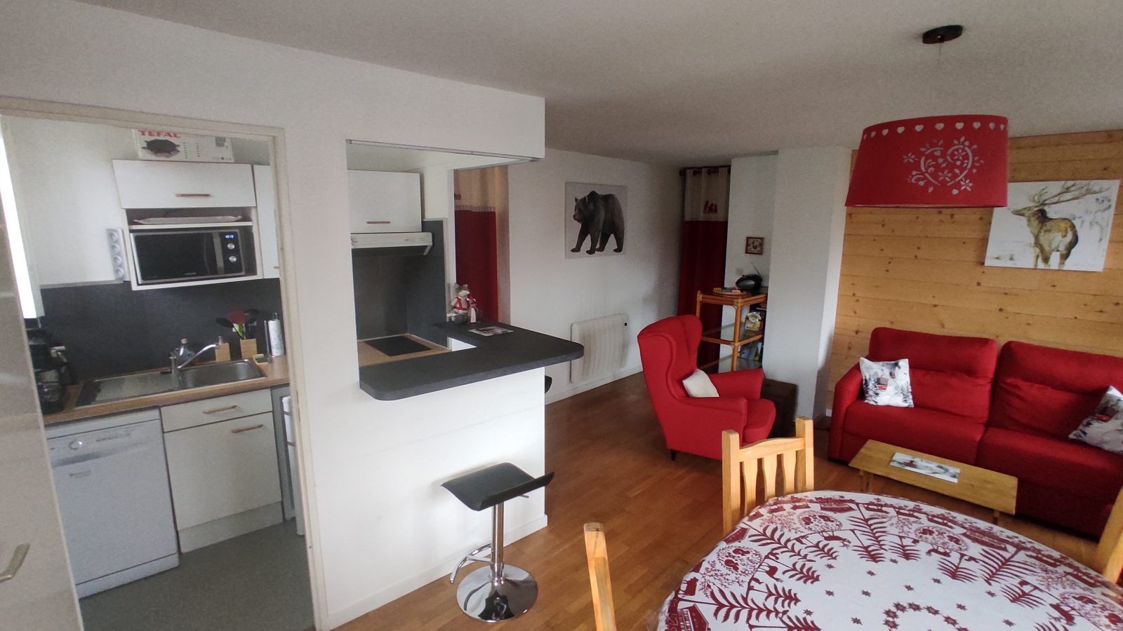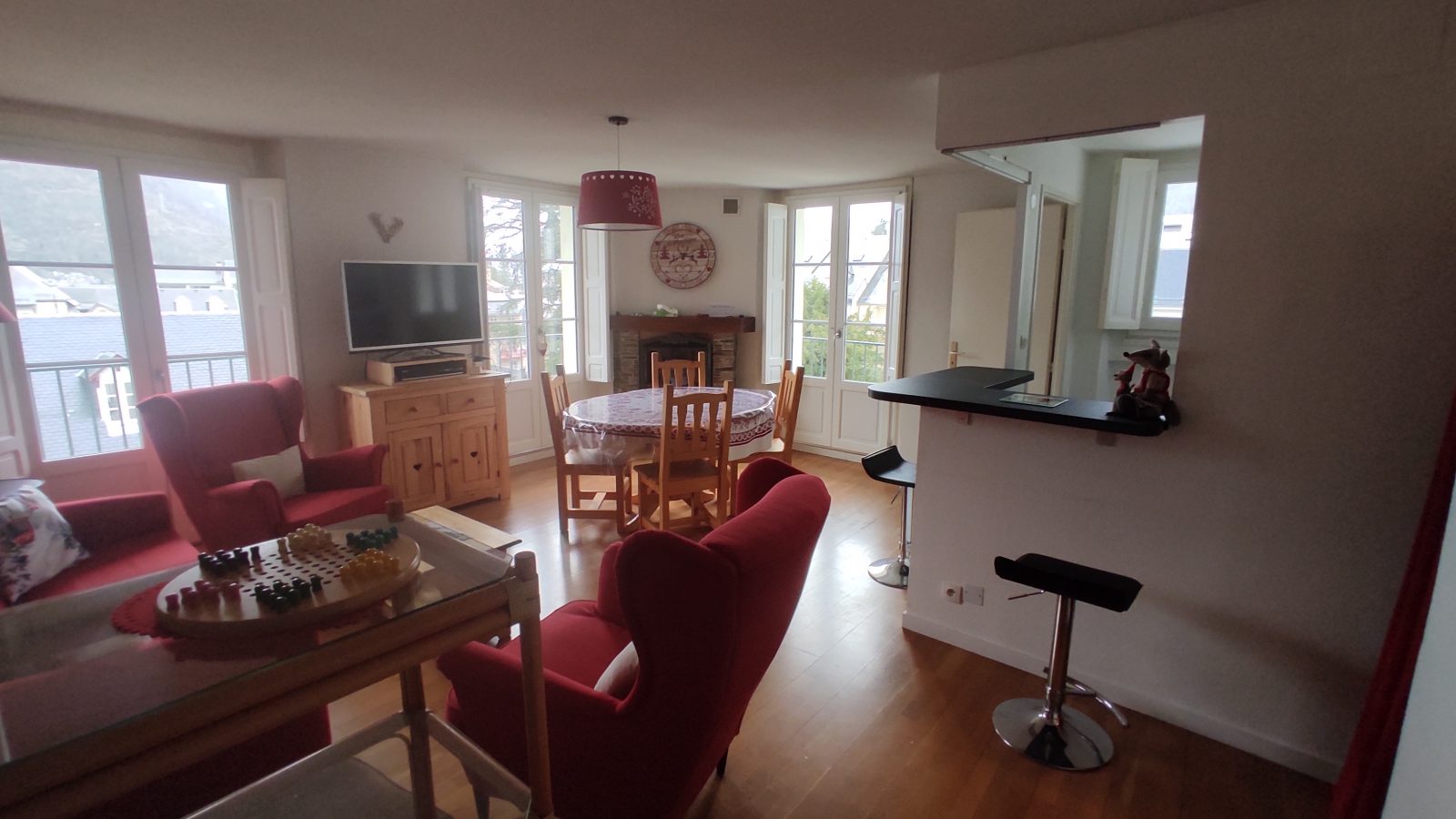 L'appartement est situé en façade arrière de la résidence au 4e étage. Il bénéficie d'une vue dégagée sur la montagne et le parc privé arboré d'une ancienne maison de famille. Il donne sur une cour ouverte et une petite rue calme. Ainsi, vous pourrez apprécier un environnement très calme tout en profitant d'une situation centrale dans la ville. Il se compose : - d'une entrée avec 1 grand placard - d'une kitchenette équipée bar - d'un séjour salon Canapé convertible RAPIDO (couchage 140 cm) - d'une chambre (lit en 160 cm) avec armoire - d'une chambre 2 lits 90 pouvant être reliés avec armoire - d'une salle de bains avec baignoire - d'un WC séparé.