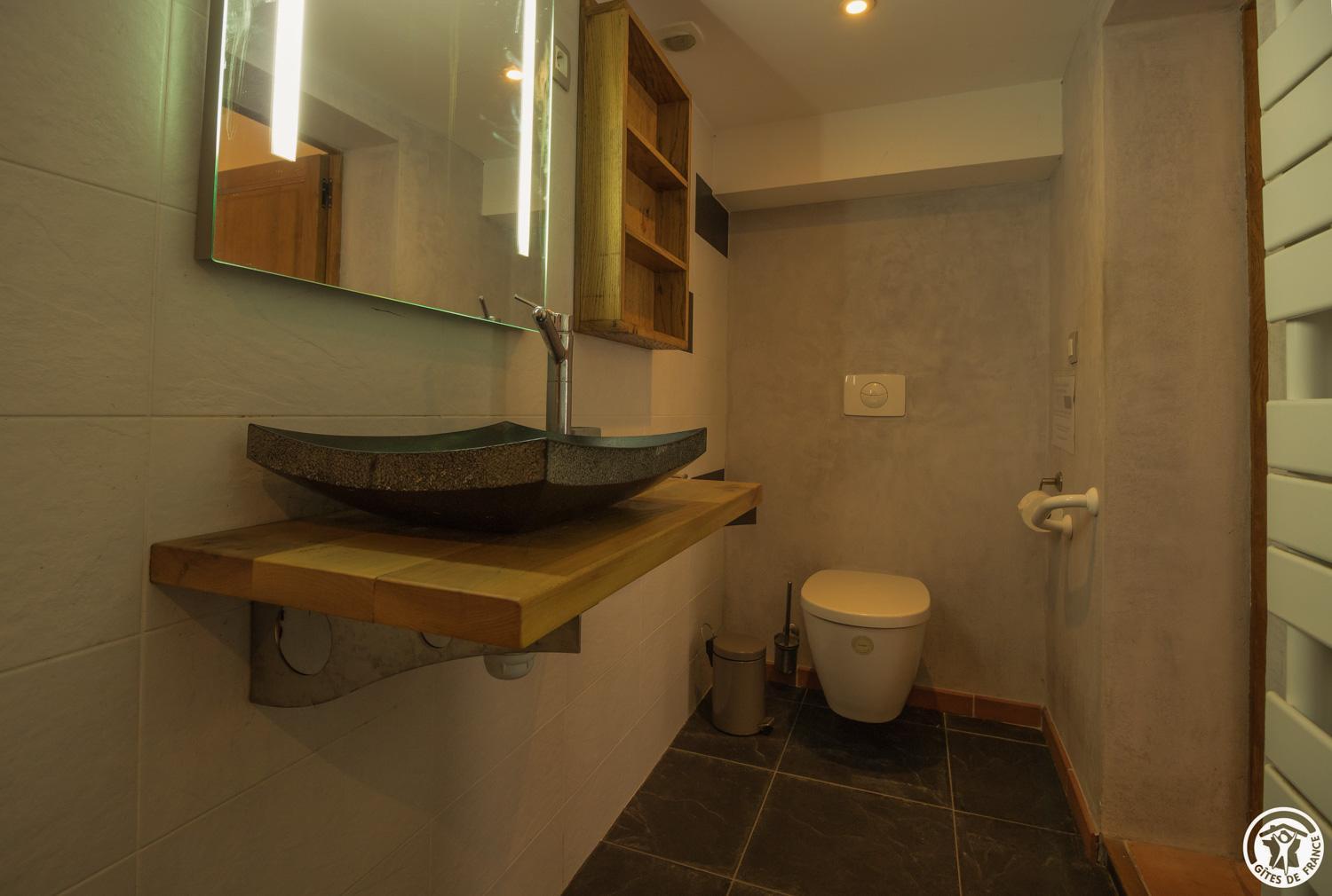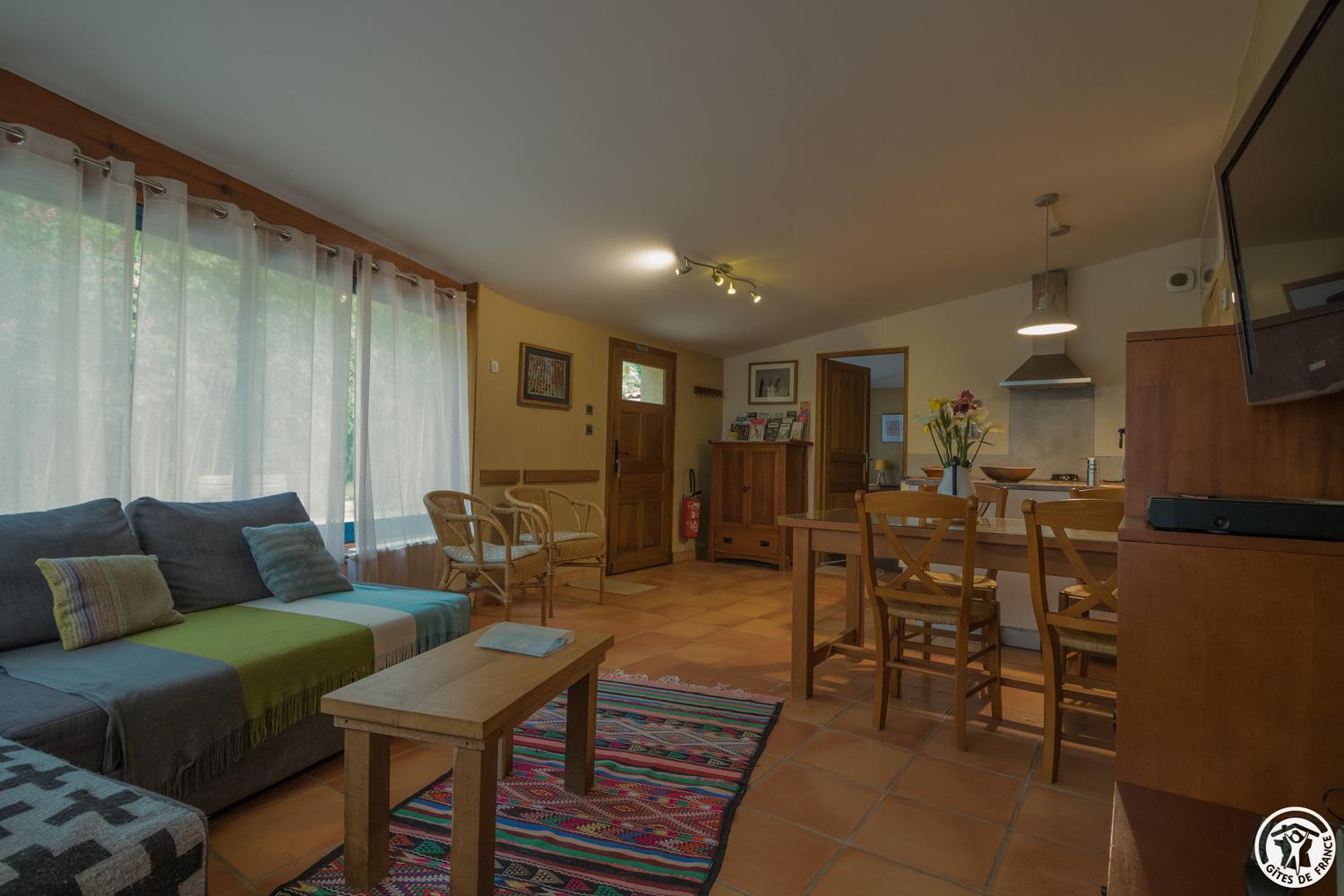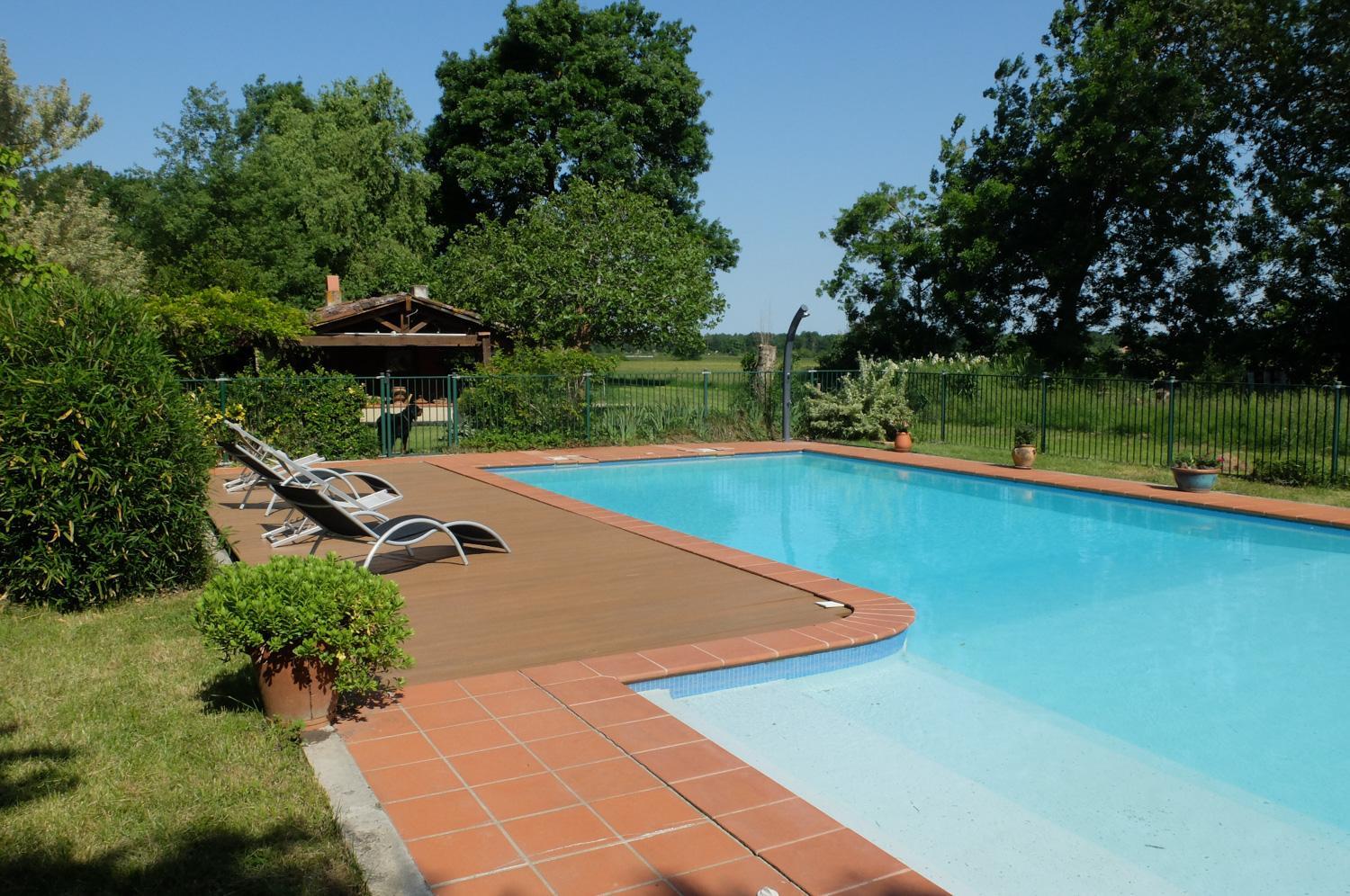 Terre de Sabonnères, c'est une ancienne métairie datant du XIXème siècle, bâtie en brique crue sur un terrain de 3,5 hectares entouré de bois et de champs (mare non clôturée dans le jardin). La restauration du gîte a privilégié les matériaux naturels (bois, chaux, terre crue, terre cuite, pierre) typiques du village de Poucharramet. Terrasse couverte. Piscine hors sol (12.30x5.25m) commune sécurisée par une barrière, ouverte de fin mai à fin septembre (12,5x5m). Le gîte est mitoyen de l'habitation des propriétaires. Balades et visites à proximité : lac de la Bure à 4km (pêche et balade), parc de loisirs pour enfants de Tépacap à 9km, brasserie la Muretaine et la Bérataise à 10 min, lac des Bonnets (jeux aquatique, restaurant, baignade, karting) à 11km, fleuve de la Garonne (chemin de Saint-Jacques-de-Compostelle, sentier de randonnées et piste cyclable à Mauzac) à 14km, Muret à 15km (Aqualudia, commerces, gare SNCF, salle de séminaires Horizon Pyrénées) et Auch à 60km. Toulouse est à 35km. Aménagement de plain-pied : séjour avec coin-cuisine, cellier, 1 chambre (1 lit 2 personnes en 140cm) avec sa salle d'eau/WC, 1 chambre (1 lit 2 personnes en 160cm + 1 lit 1 personne en 90cm) avec sa salle d'eau/WC. TELETRAVAIL : mise à disposition d'un bureau, d'un fauteuil, d'une lampe (proximité d'une prise électrique pour le branchement d'un ordinateur portable, rallonge et multiprise sur demande), connexion Internet haut débit (wifi + câble RJ45). Couverture téléphonique 3G et 4G (opérateur : Orange). ACCUEIL SOCIETES: L'hébergement n'est pas adapté.