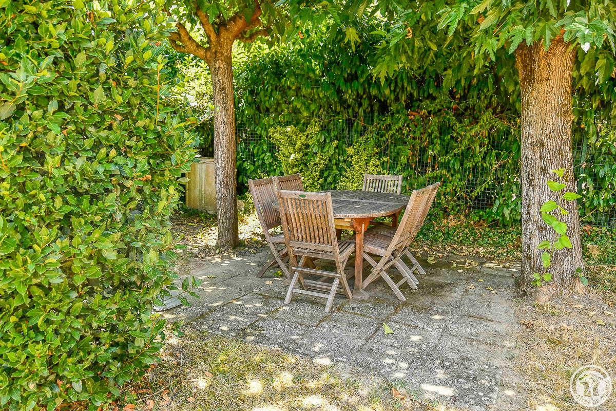 Maison de vacances sans mitoyenneté avec jardin privatif clos arboré et terrasses pour manger à l'ombre, sur le sentier de randonnée de la ViaGarona (chemin de Saint-Jacques-de-Compostelle), à 46km au sud-ouest de Toulouse