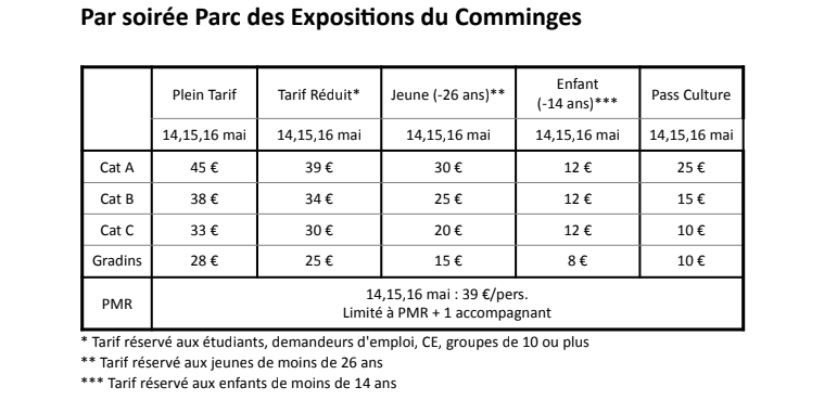 Attention, cette année il y a un concert au Cube le mercredi 13 mai à 20h30 les autres concert seront au Parc des Expositions du Comminges